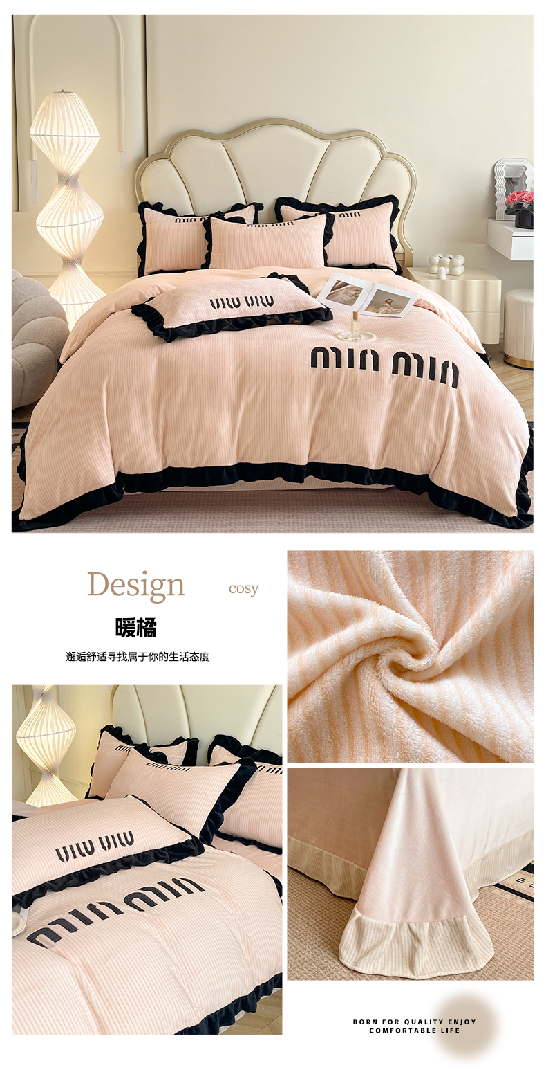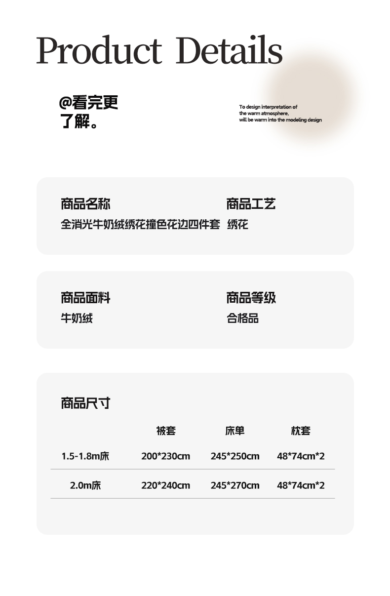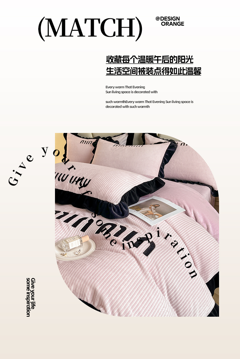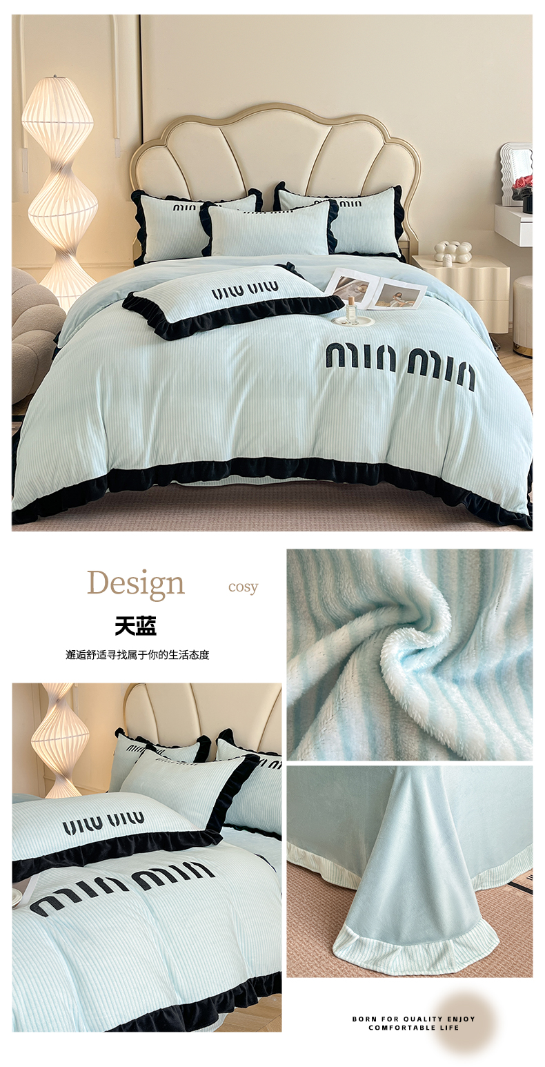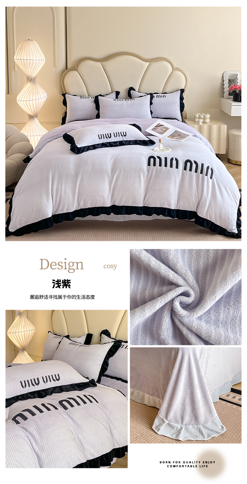商品名称:(总)博纳 2025新款210克全消光牛奶绒绣花撞色花边吊边床单四件套-遇见