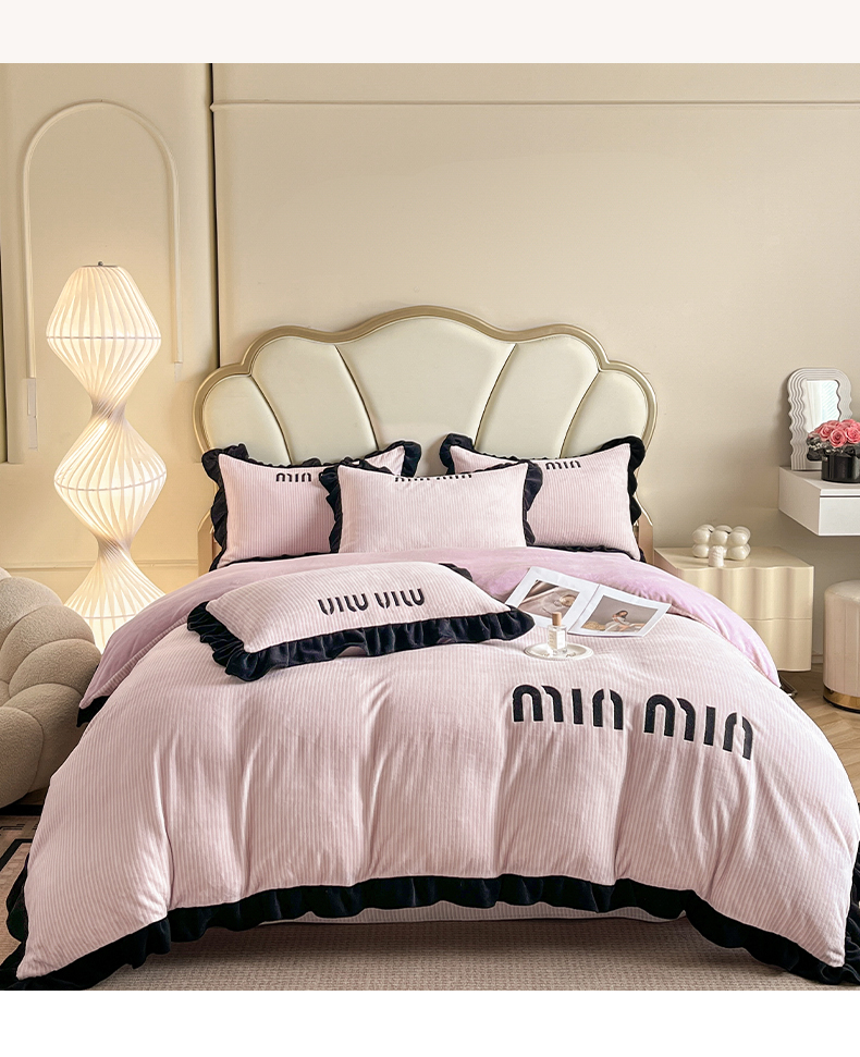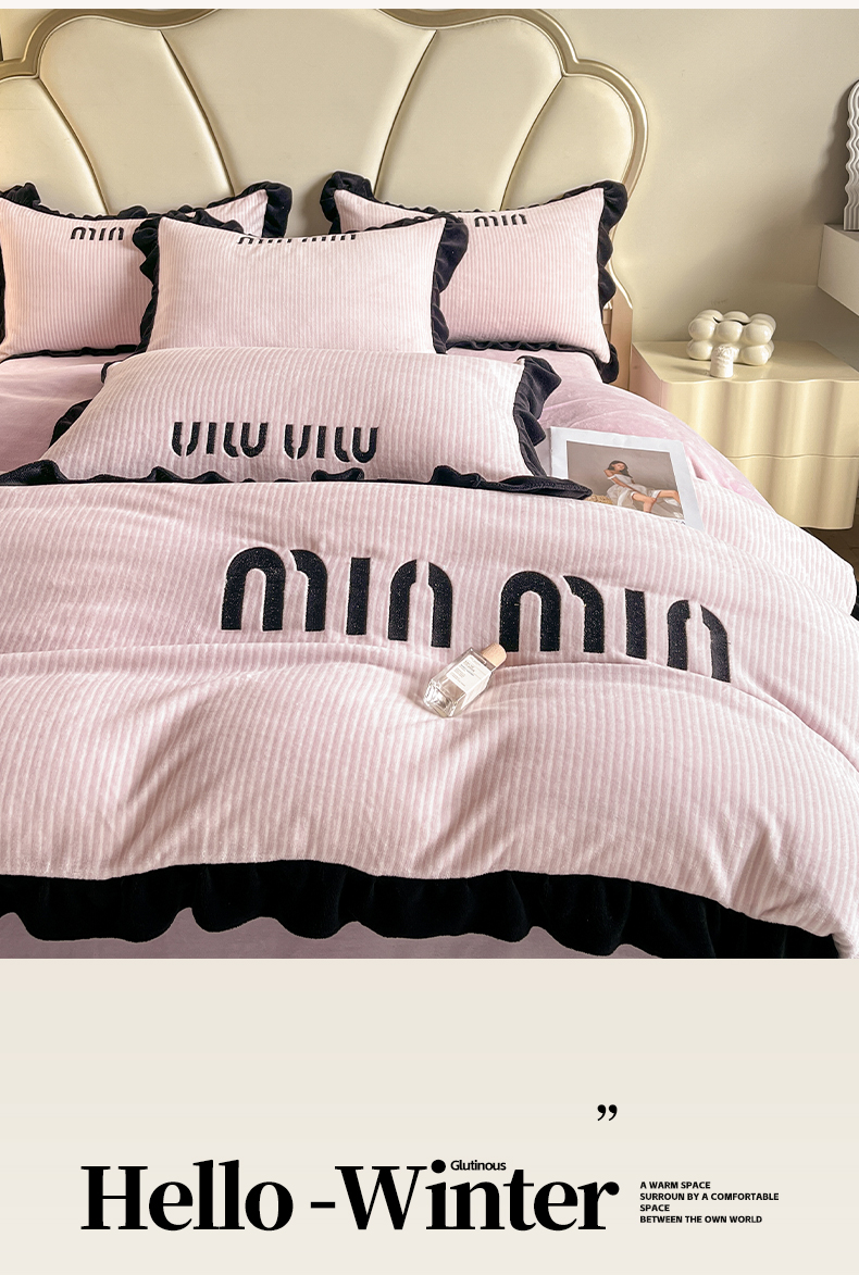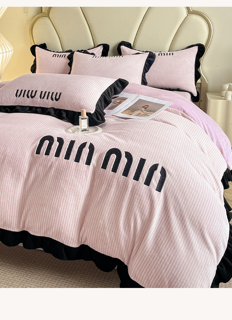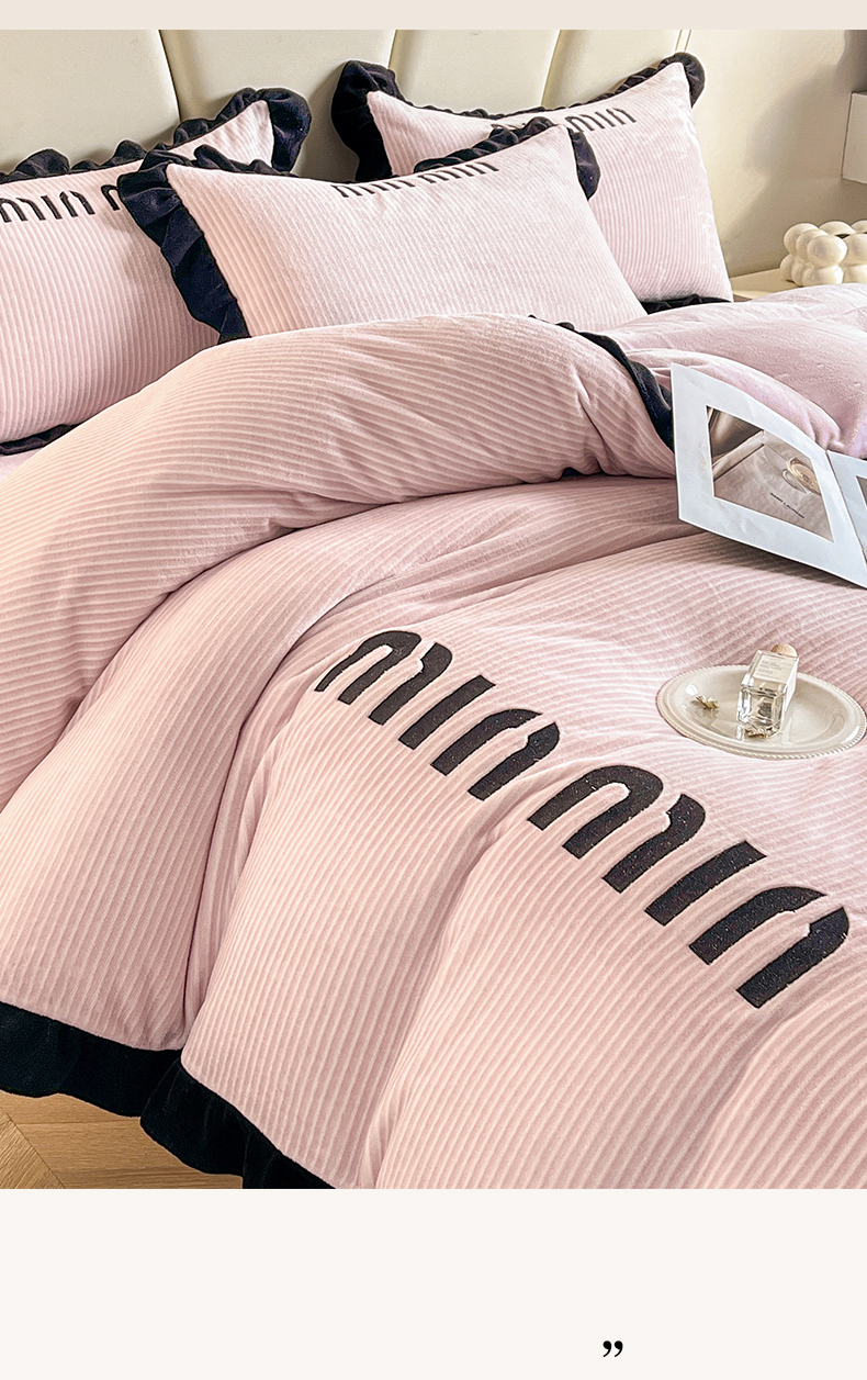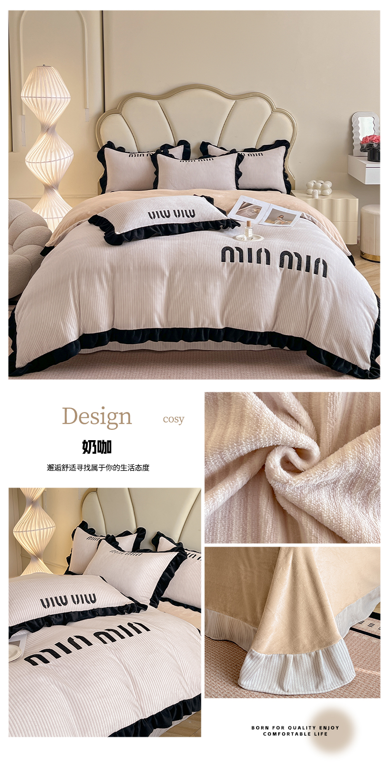 商品名称:(总)博纳 2025新款210克全消光牛奶绒绣花撞色花边吊边床单四件套-遇见