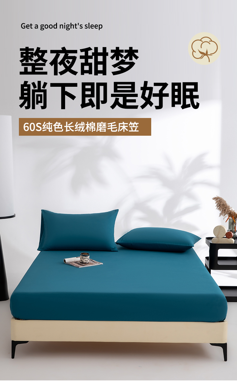 (总)寝柔家纺 2025新款60S全棉磨毛纯色长绒棉纯棉床笠多规格(高度为床笠高度,适用床垫厚度应适当减去5厘米左右),午夜蓝,水波兰,碳木灰,少女粉,杏驼,魅力紫,奶霜黄,暖橙