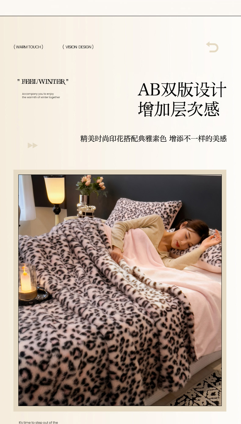 (总)九花鹿 2025新款丹麦皮草绒水貂绒盖毯毛毯毯子-豹纹,豹纹粉,豹纹灰,豹纹咖