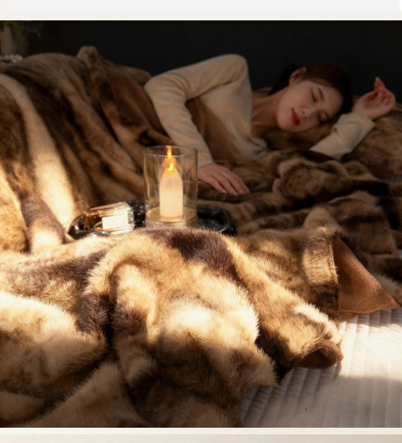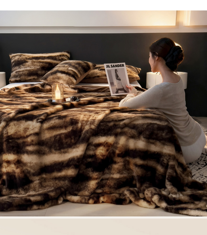 九花鹿 2025新款丹麦皮草绒水貂绒盖毯毛毯毯子 巴洛克