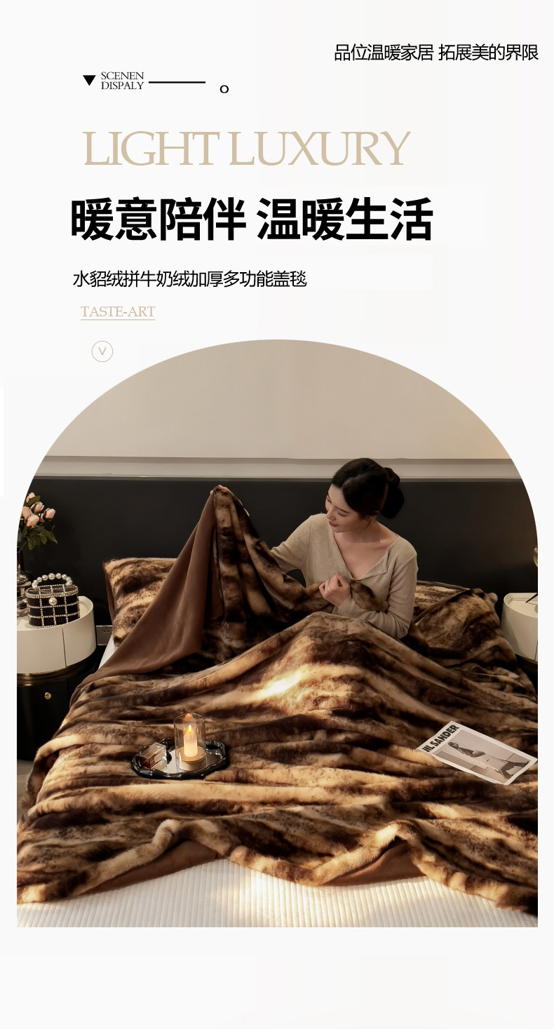 商品名称:九花鹿 2025新款丹麦皮草绒水貂绒盖毯毛毯毯子 巴洛克