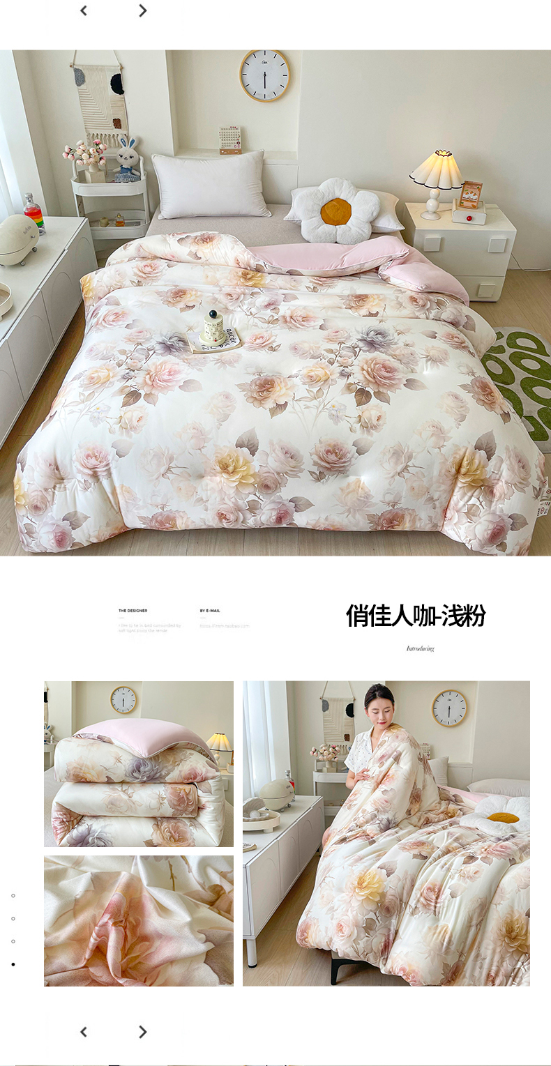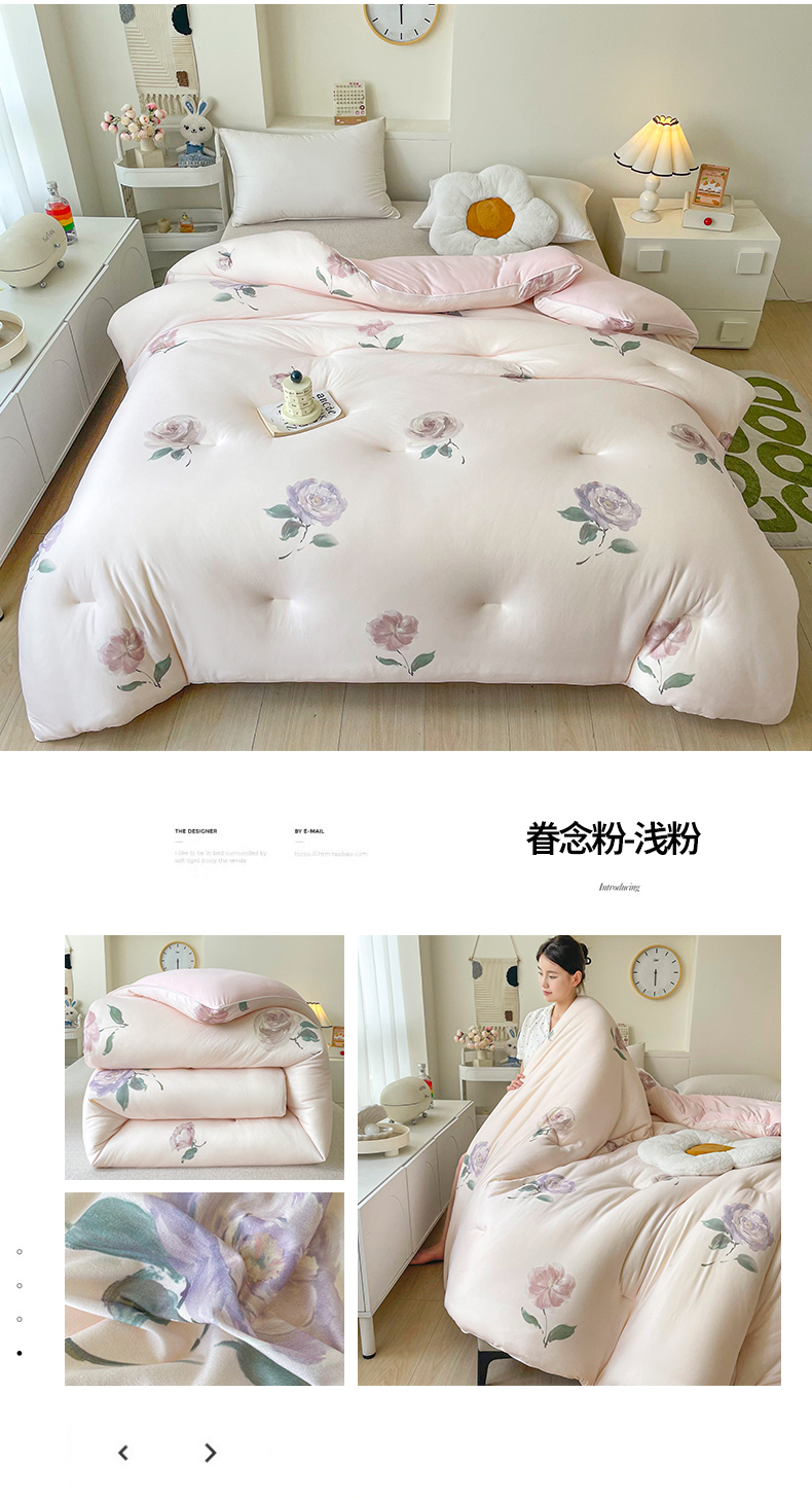 小禹仔家纺 2025新款亲肤柔软大豆被数码印花针织棉大豆被冬被子被芯春秋被 蔷薇粉,蔷薇粉