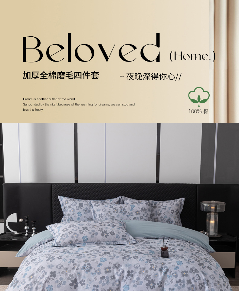 当前位置: 91家纺网 > 商品网购 > 床品套件 > 四件套 > 全棉普通四件套 > 贝兰仙奴 2025新款全棉磨毛多规格系列四件套 春风恋影灰