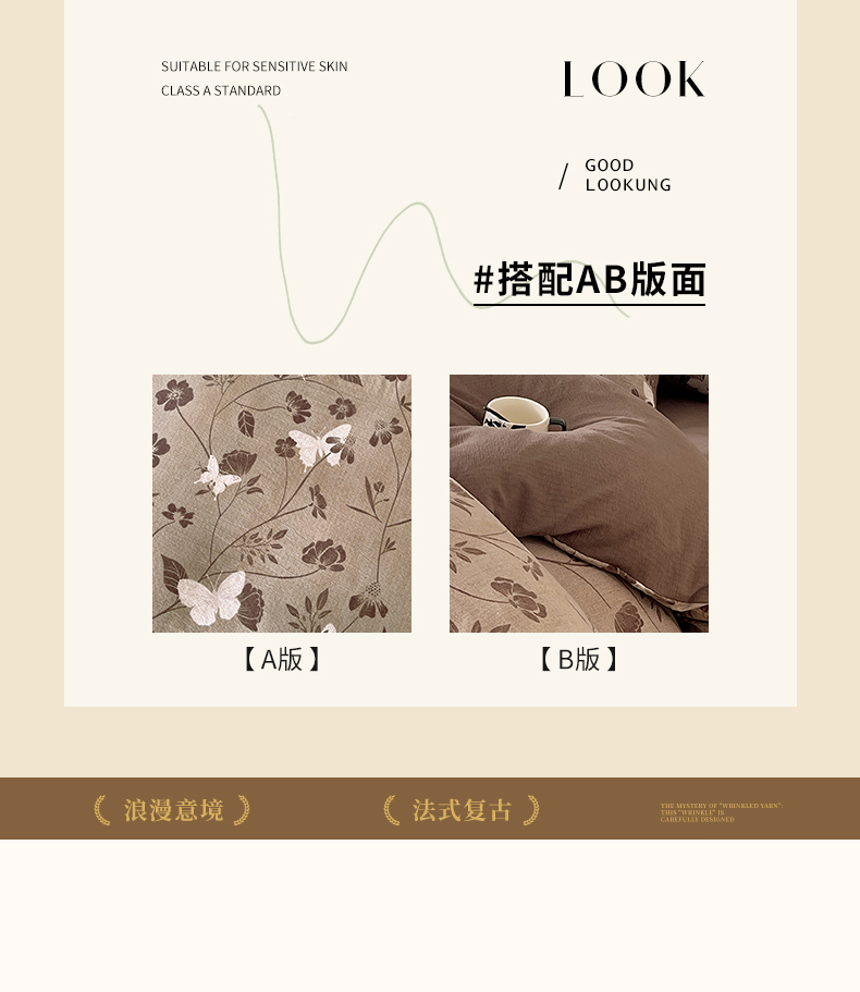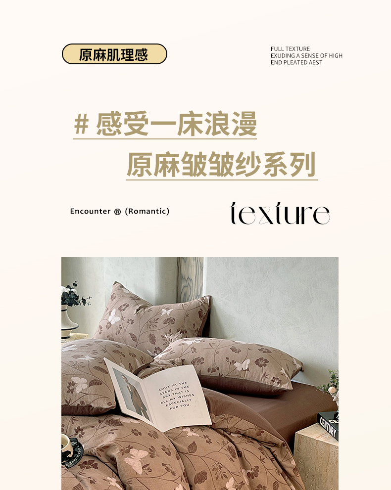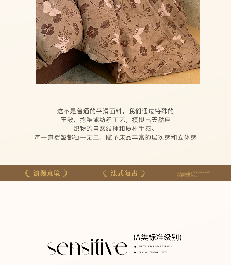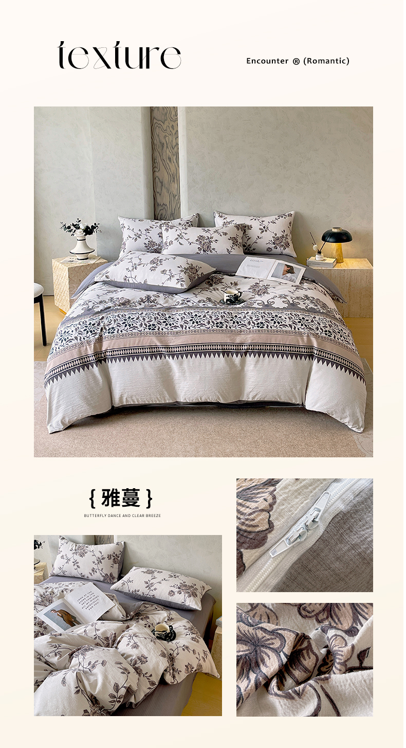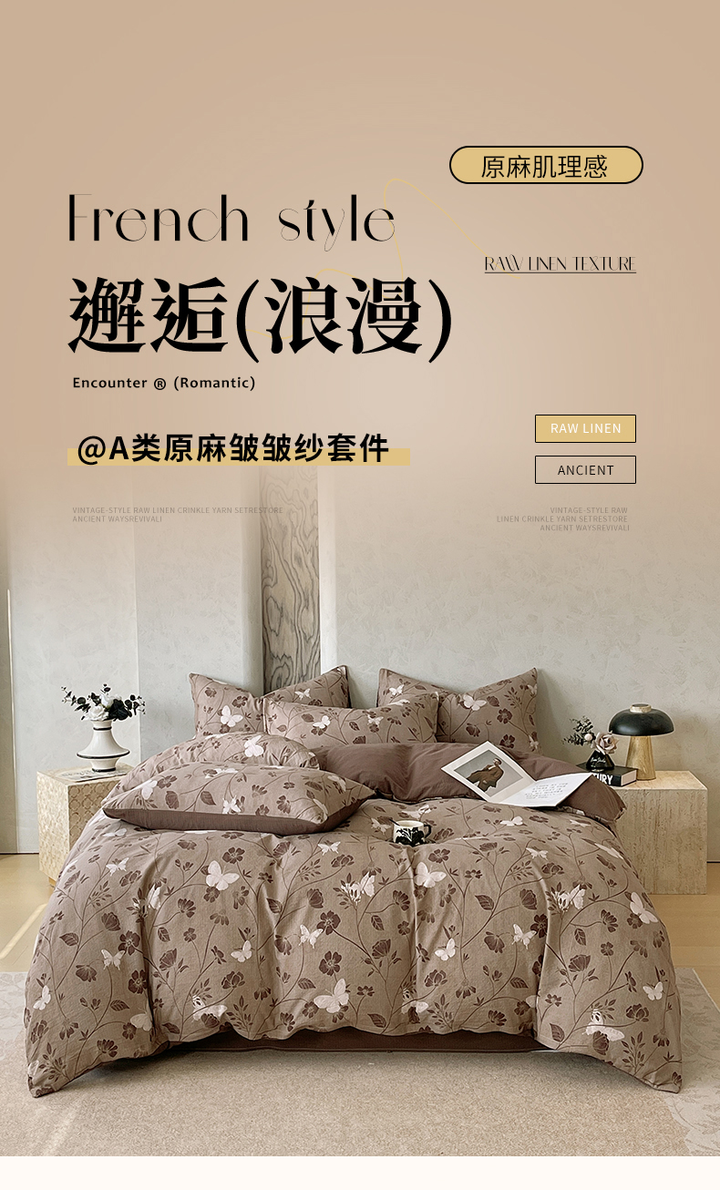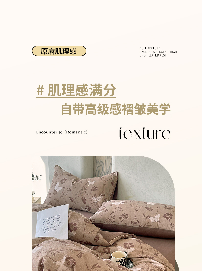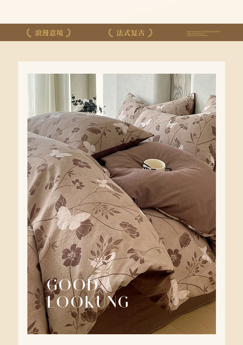 当前位置: 91家纺网 > 商品网购 > 床品套件 > 四件套 > 其它四件套 > 宝士康家纺 2025秋冬新品高克重A类原麻暗合四件套复古加厚双层纱仿亚麻套件 蝶语