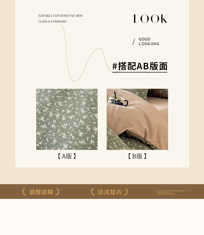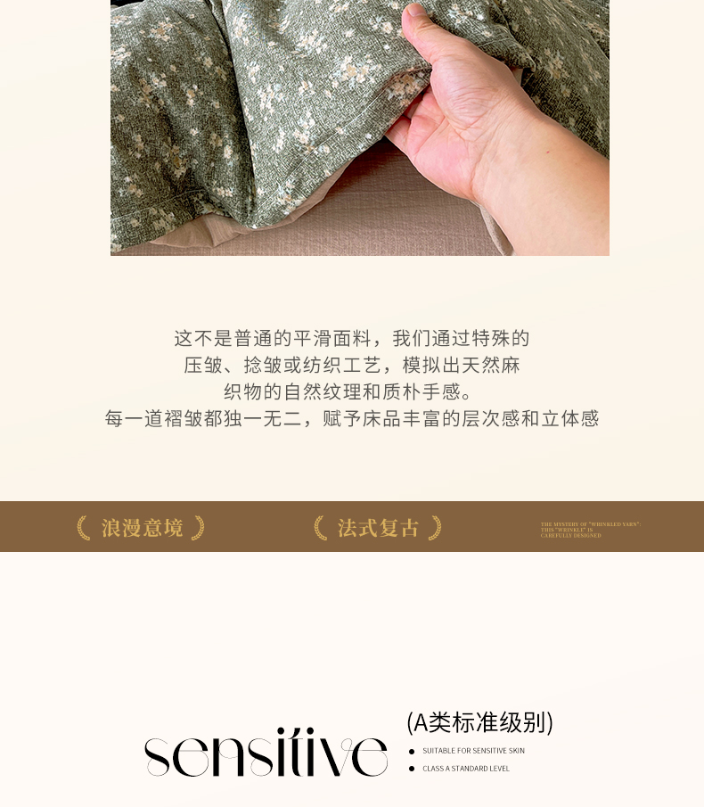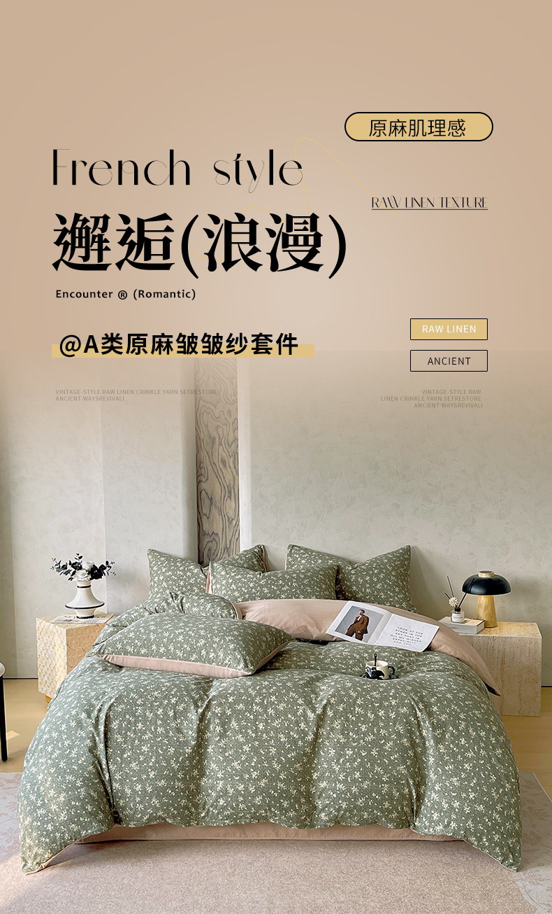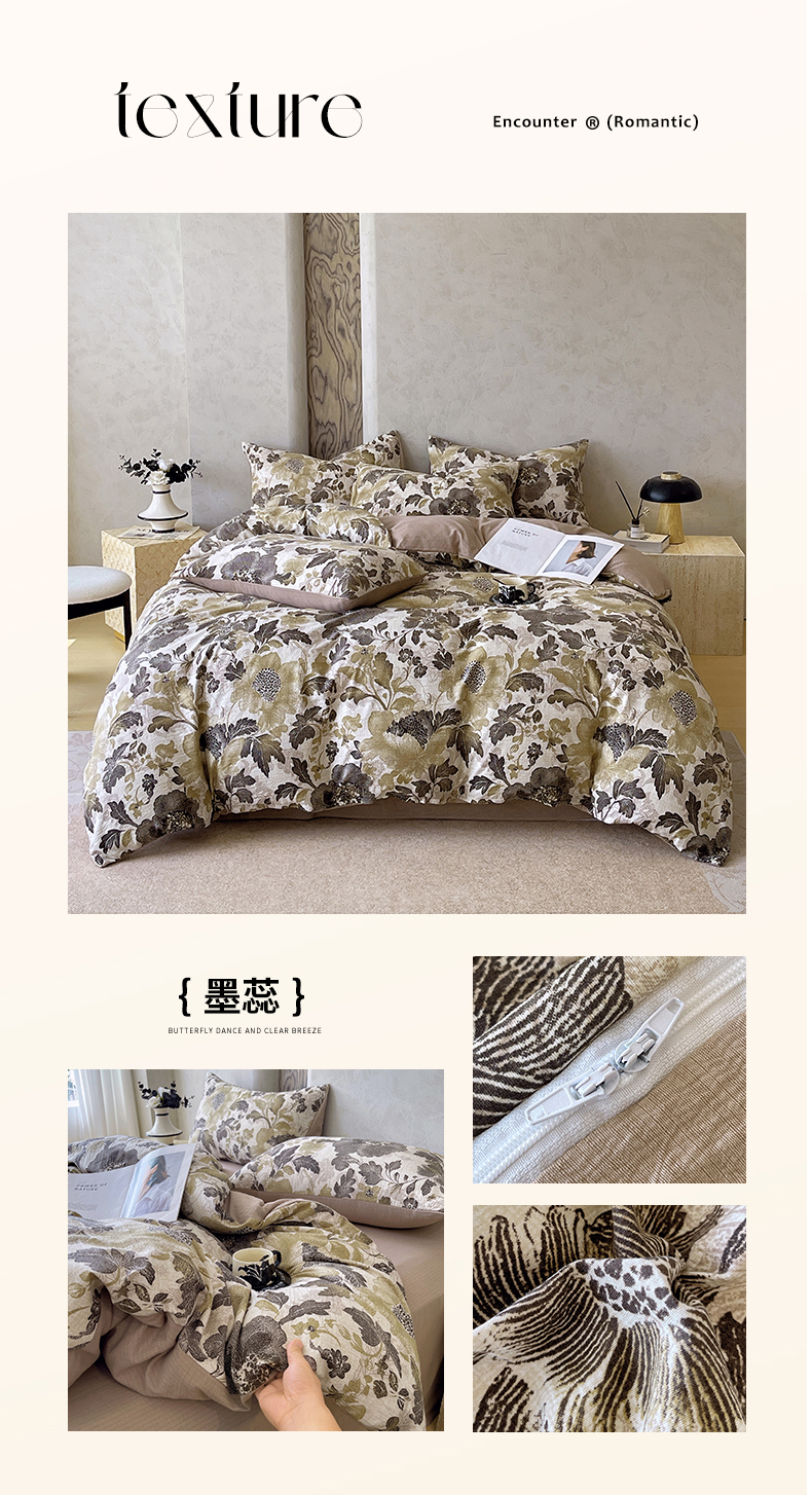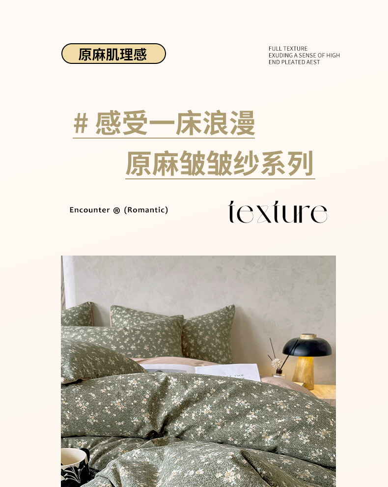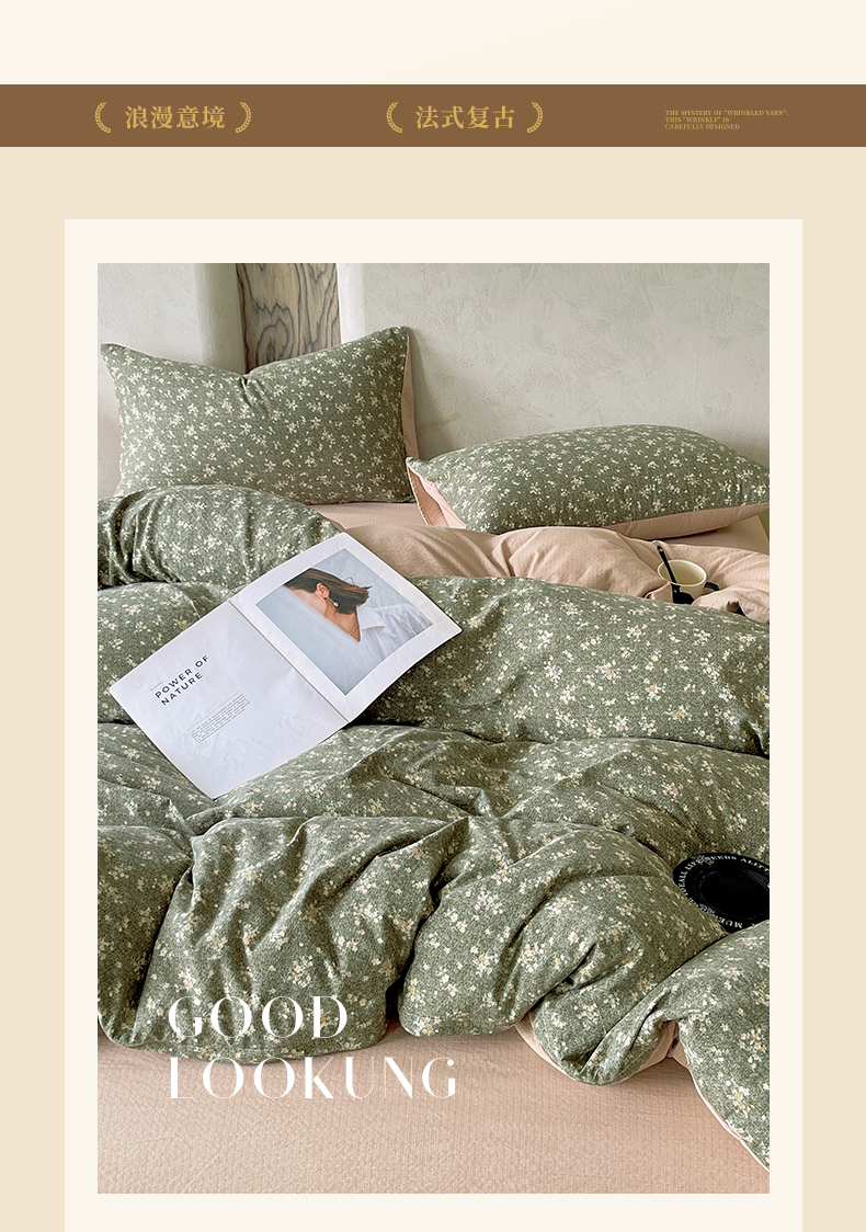当前位置: 91家纺网 > 商品网购 > 床品套件 > 四件套 > 其它四件套 > 宝士康家纺 2025秋冬新品高克重A类原麻暗合四件套复古加厚双层纱仿亚麻套件 森语