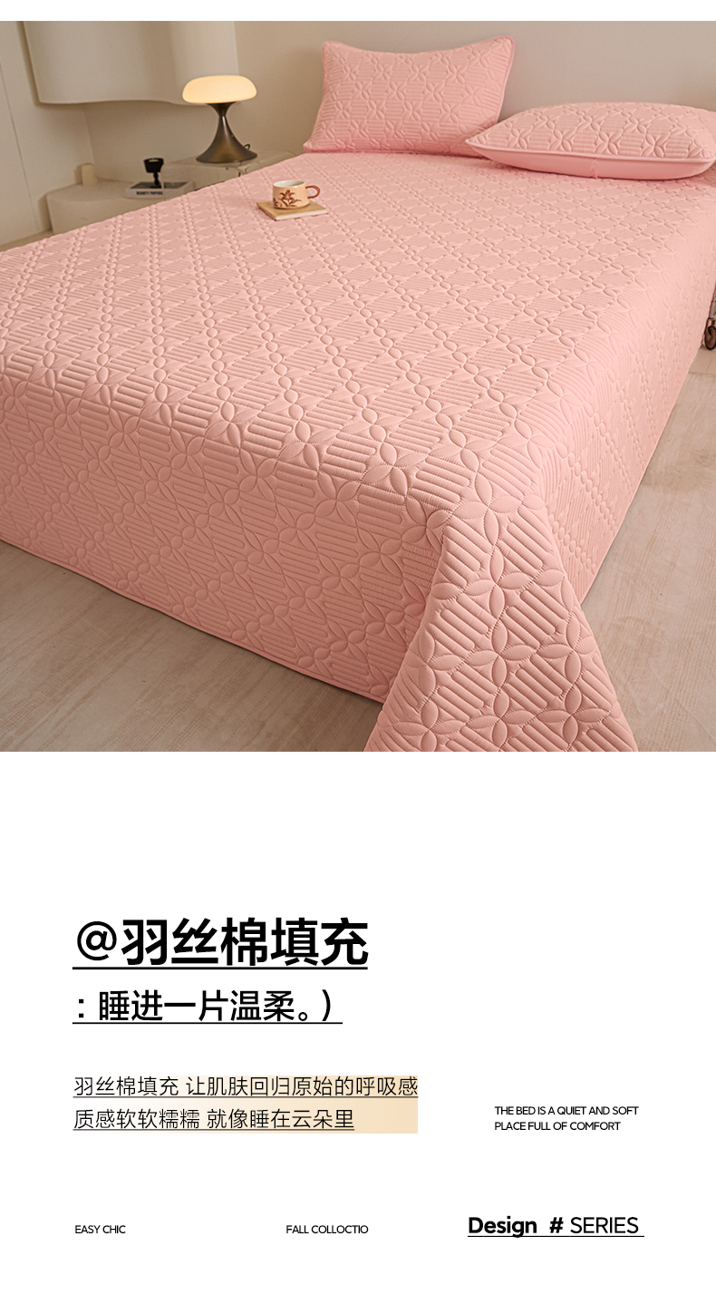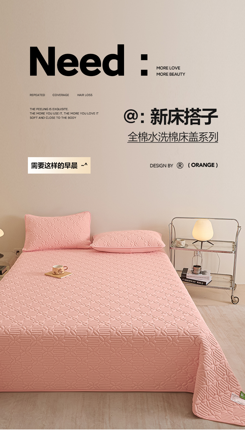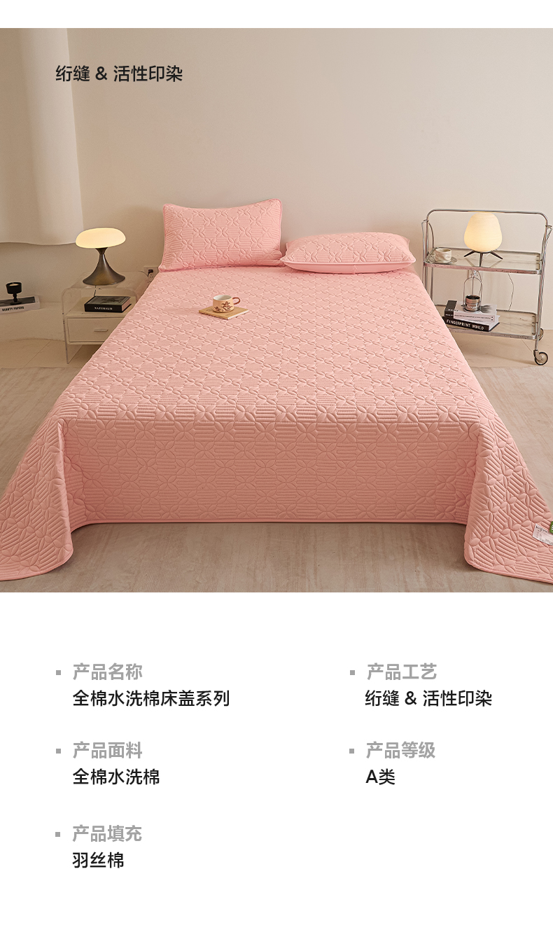 • 91家纺网 家纺一手货源 找家纺 芬晴家纺 2025新款A类全棉水洗棉床盖-心欢系列-遇见系列 依恋-嫩粉