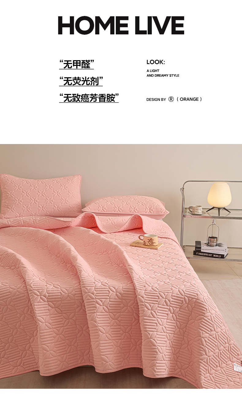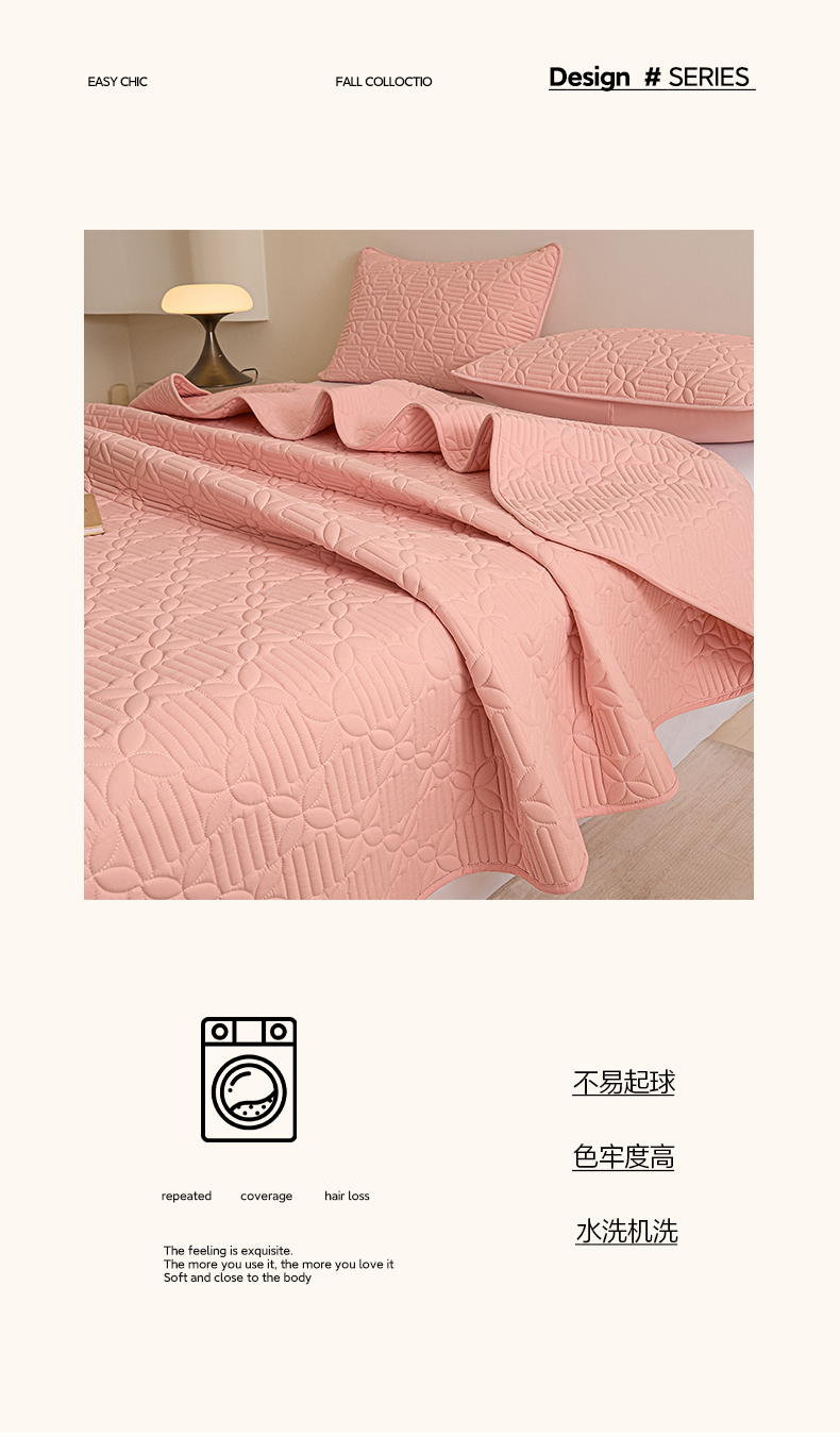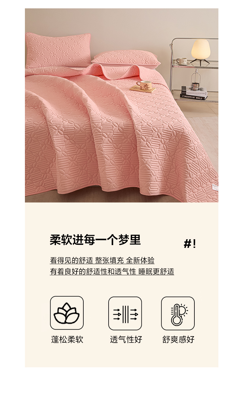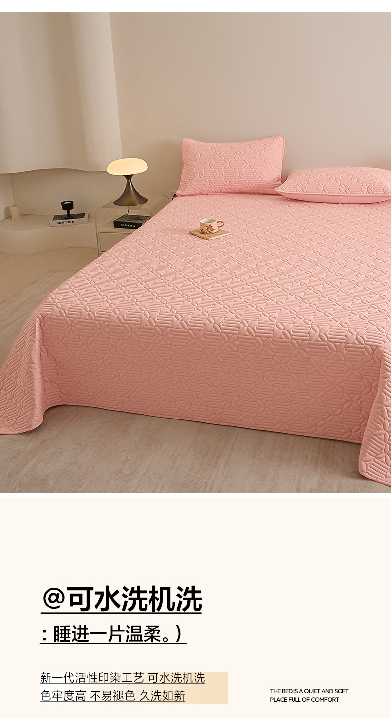 • 91家纺网 家纺一手货源 找家纺 芬晴家纺 2025新款A类全棉水洗棉床盖-心欢系列-遇见系列 依恋-嫩粉