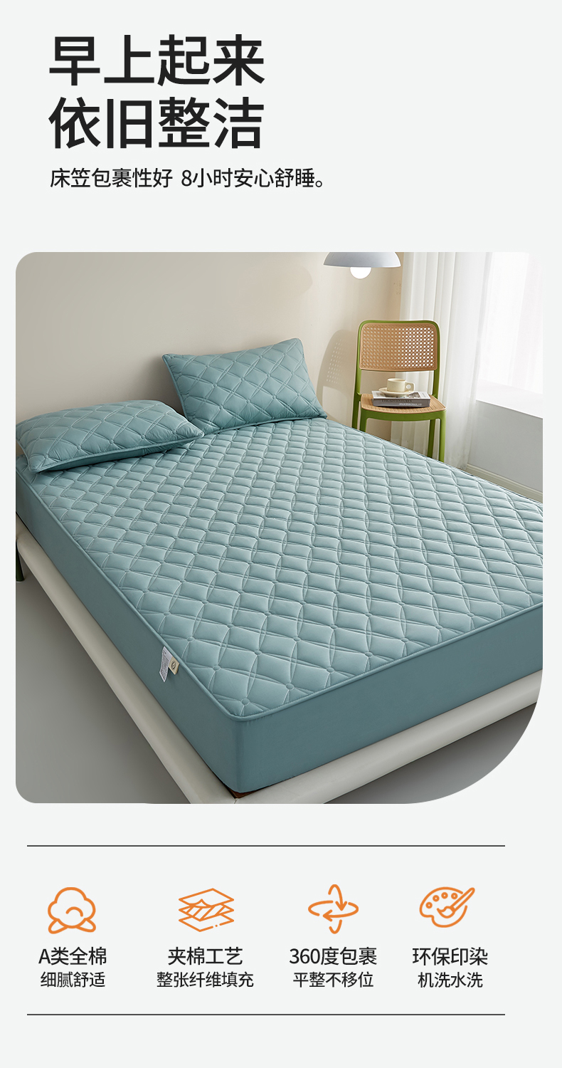 (总)卓越家纺 2025新款A类全棉夹棉床护垫,组合,水绿,浅灰,深灰,驼色,豆沙,奶白
