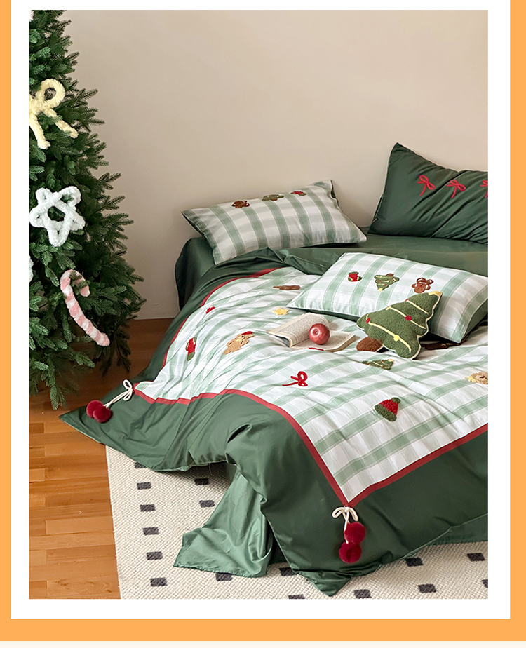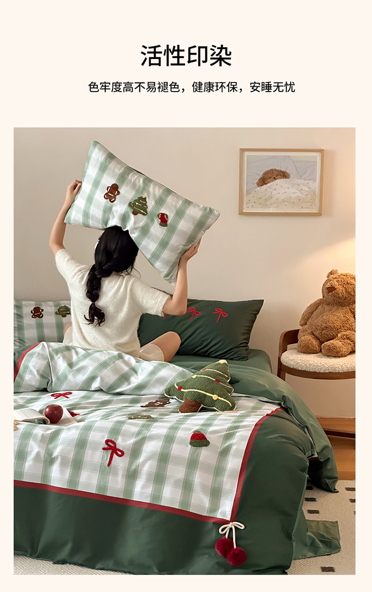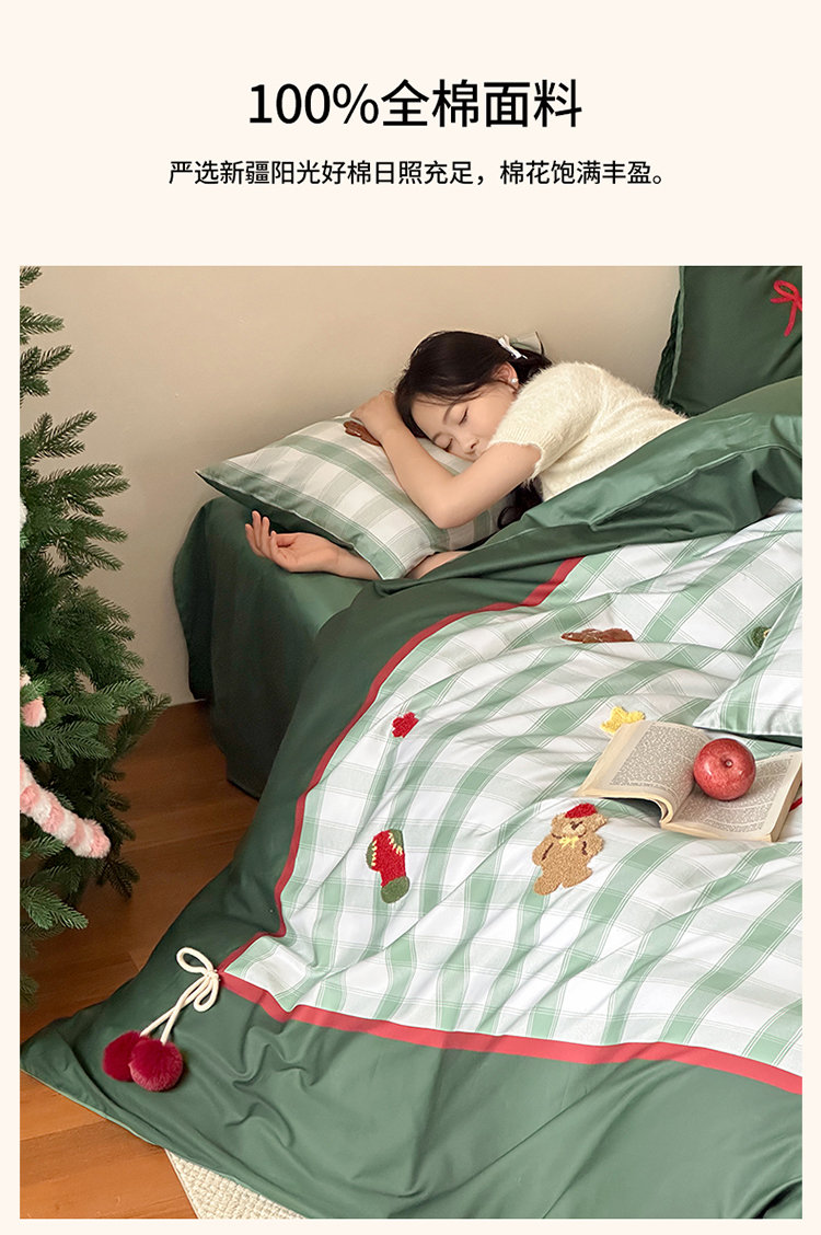 商品名称:(总)西西家居 2025新款100支澳棉全棉纯棉刺绣四件套-圣诞树送抱枕(会员-20元 抱枕限定送送送 各平台严格控价劵后不低于368元起)