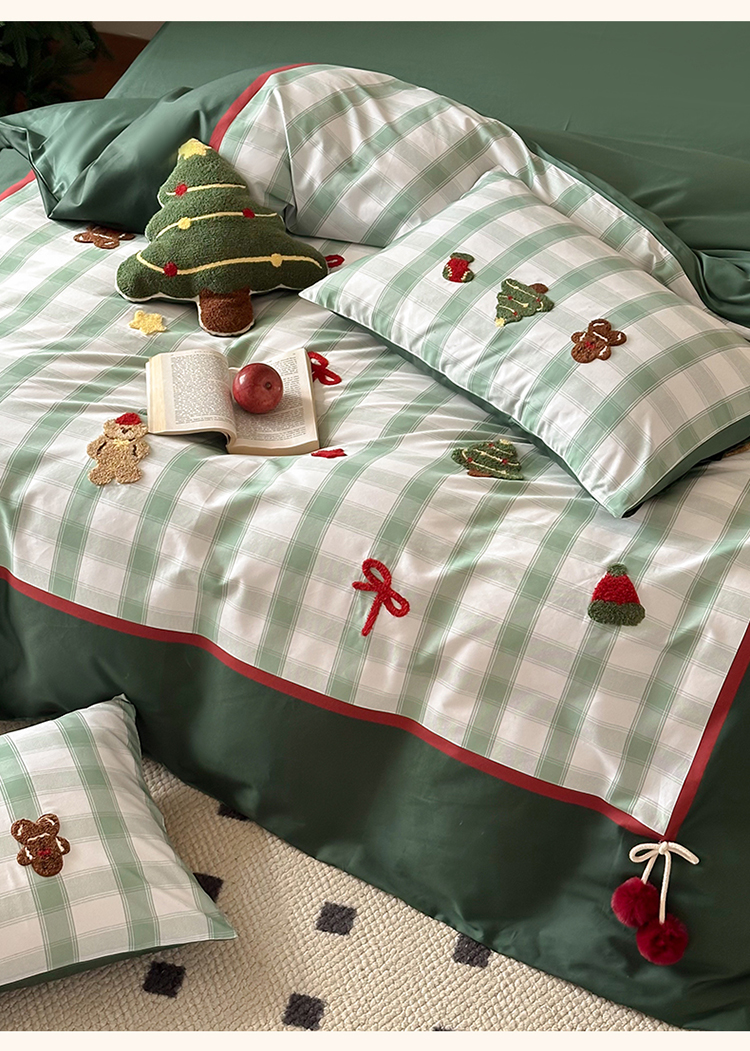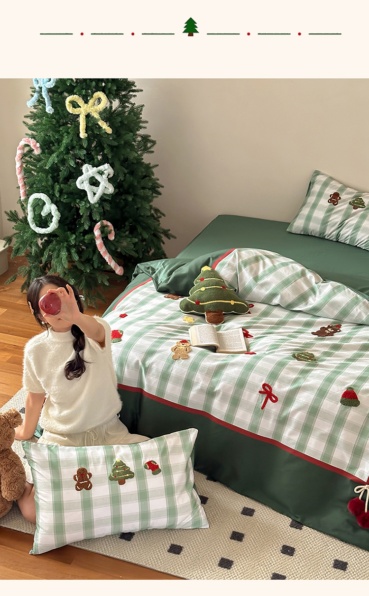(总)西西家居 2025新款100支澳棉全棉纯棉刺绣四件套-圣诞树送抱枕(会员-20元 抱枕限定送送送 各平台严格控价劵后不低于368元起)