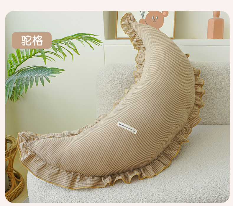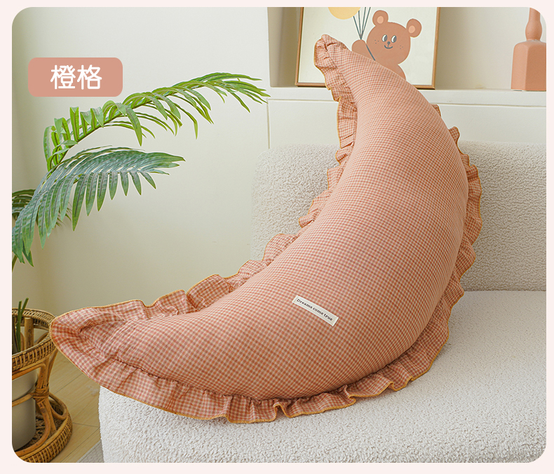 (总)蔻眠 花边款多功能全棉月亮长抱枕夹腿抱枕芯月亮枕头,主图,花边款月亮-驼格,花边款月亮-橙格,花边款月亮-灰格,花边款月亮-绿格