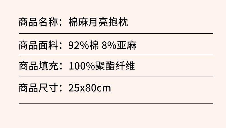商品名称:蔻眠 棉麻花边款多功能月亮长抱枕夹腿抱枕芯月亮枕头 棉麻月亮-秘境