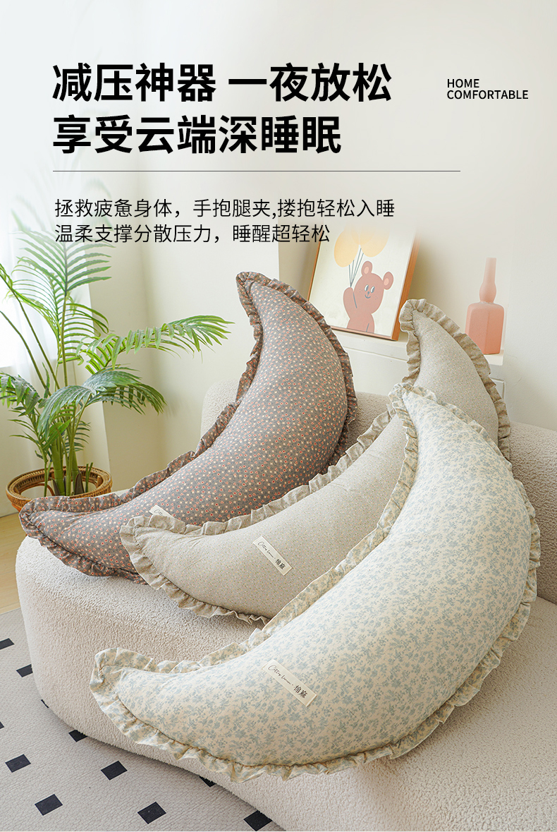 (总)蔻眠 棉麻花边款多功能月亮长抱枕夹腿抱枕芯月亮枕头,主图,棉麻月亮-碎花,棉麻月亮-光年,棉麻月亮-秘境,棉麻月亮-花簇,棉麻月亮-森屿,棉麻月亮-南栀