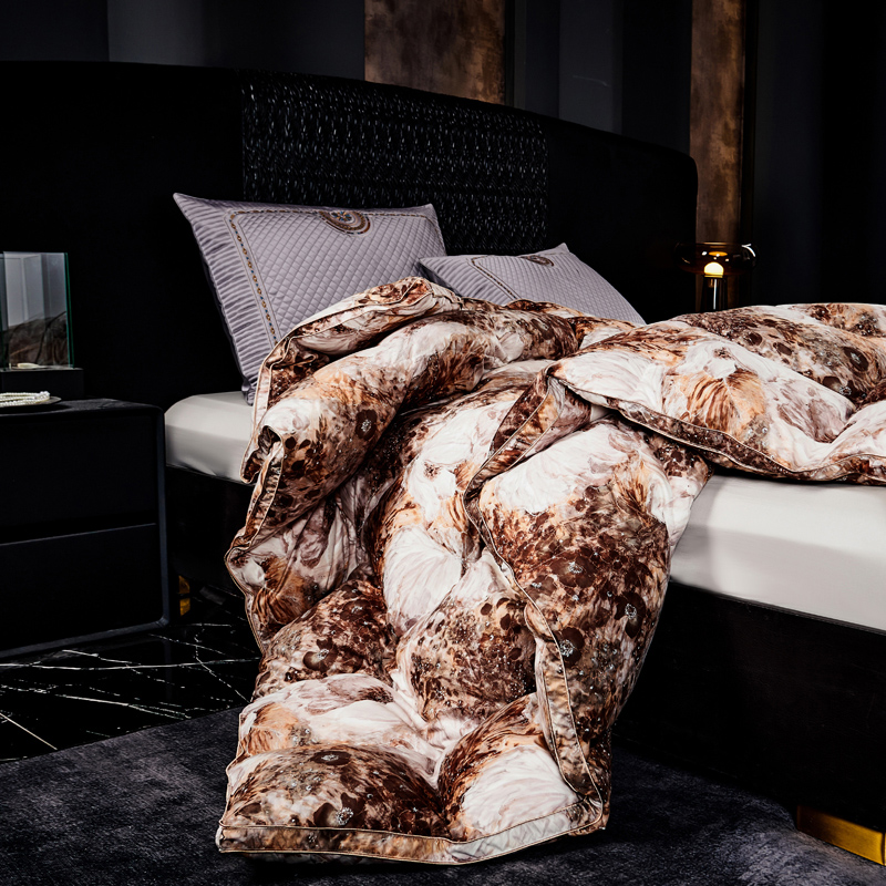 抗日家纺 专版新品羽绒被壳 高密银丝苏绣提花工艺款羽绒被 千禧之约 灰金,灰金