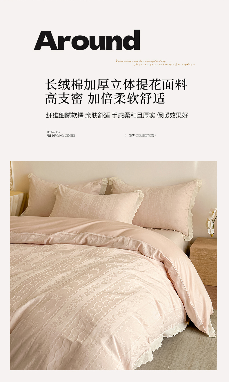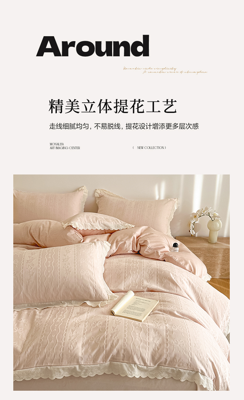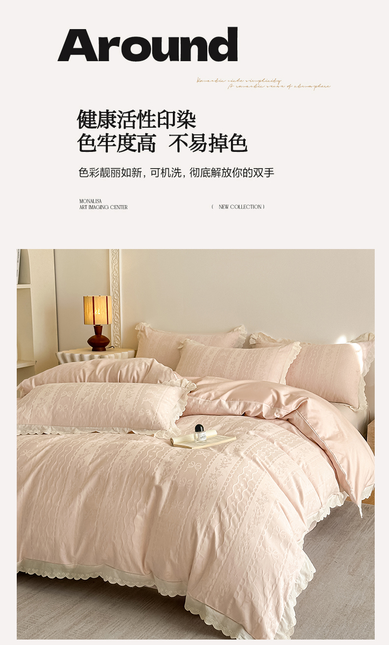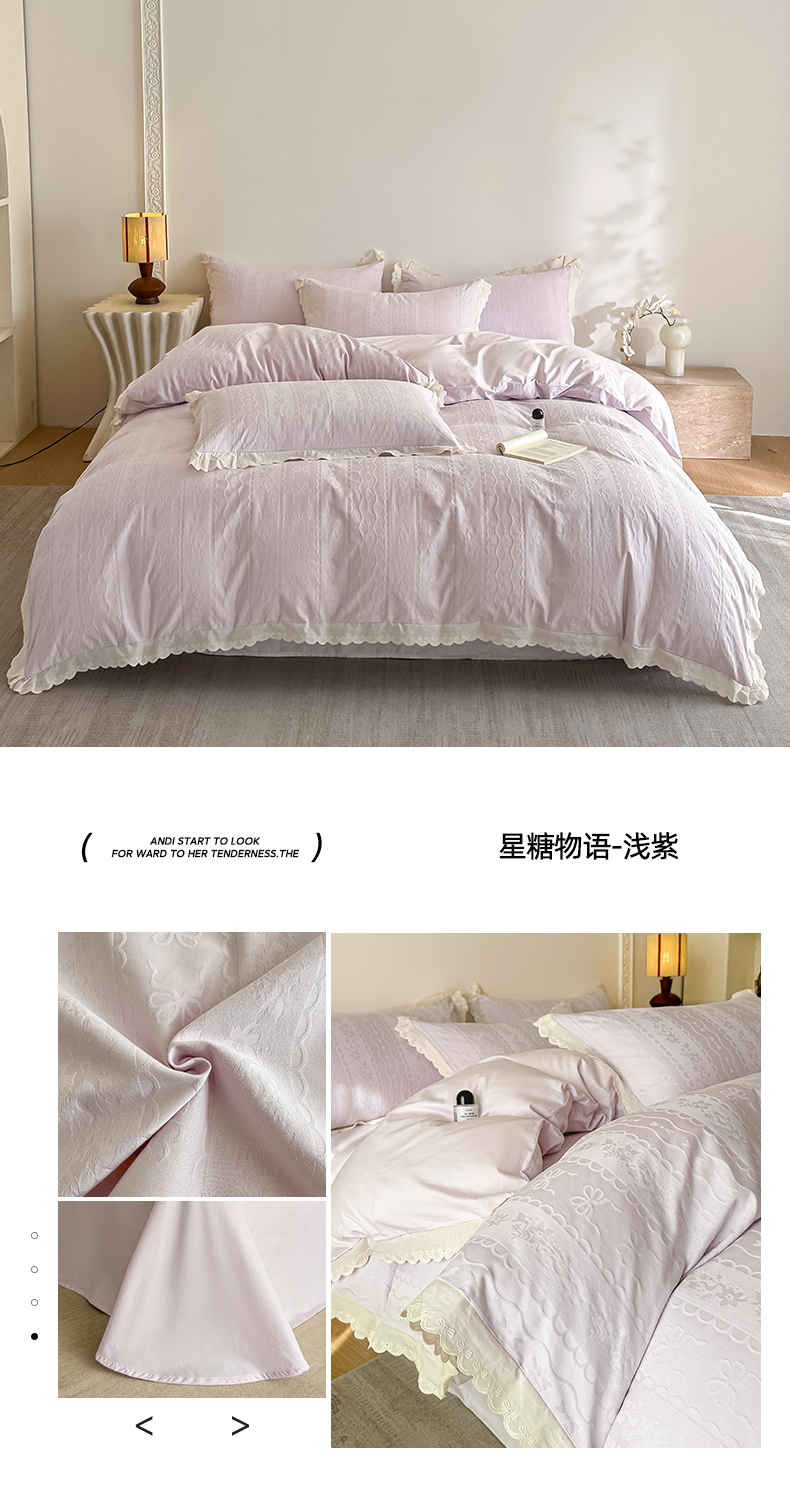 当前位置: 91家纺网 > 商品网购 > 床品套件 > 四件套 > 长绒棉四件套 > 禾时 2026新款长绒棉立体提花花边款四件套-星糖物语 星糖物语-淡粉