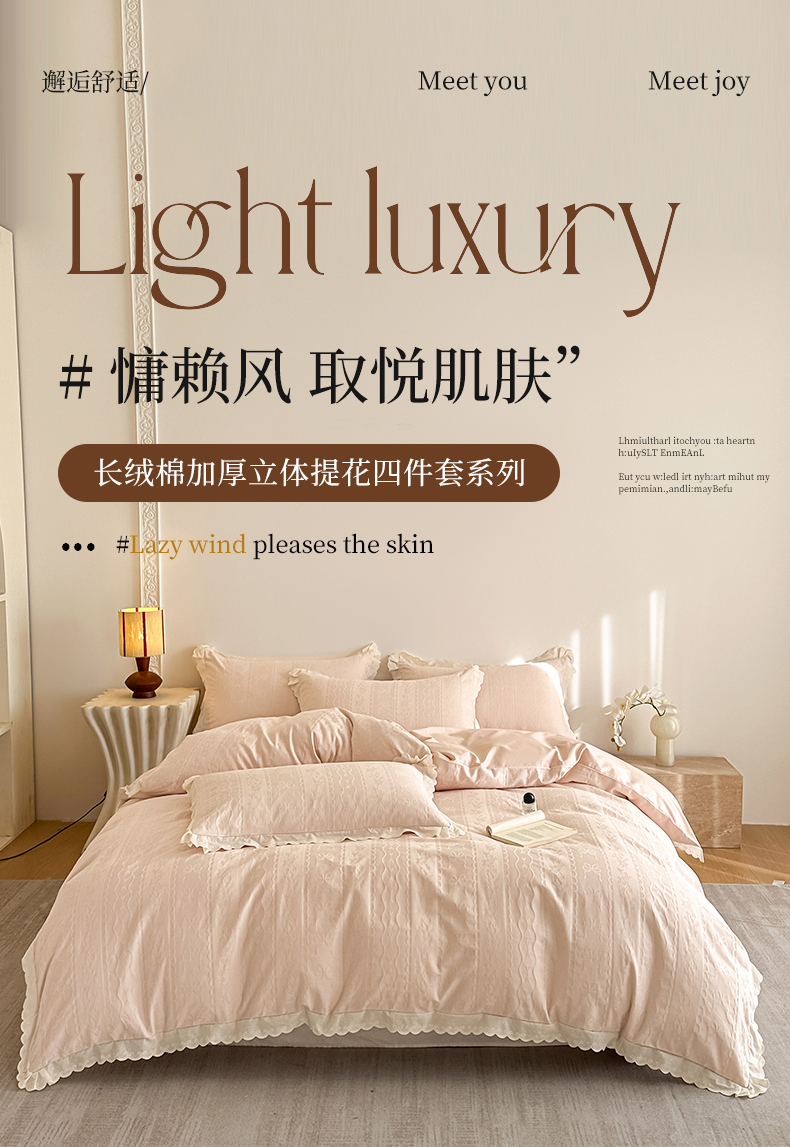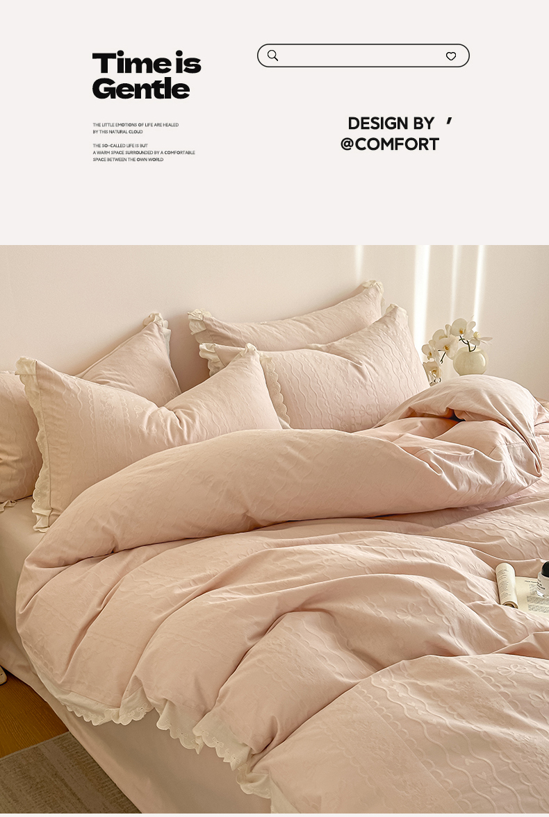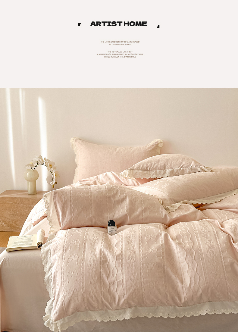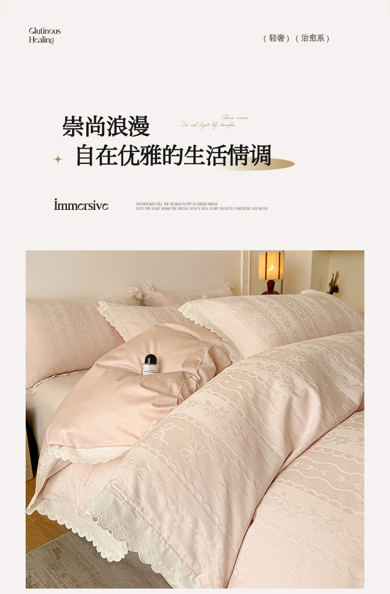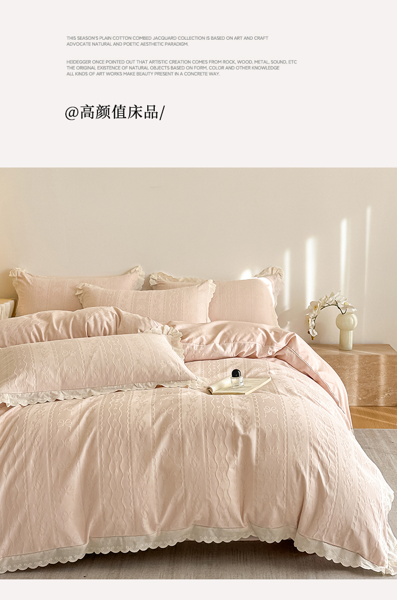 当前位置: 91家纺网 > 商品网购 > 床品套件 > 四件套 > 长绒棉四件套 > 禾时 2026新款长绒棉立体提花花边款四件套-星糖物语 星糖物语-淡粉