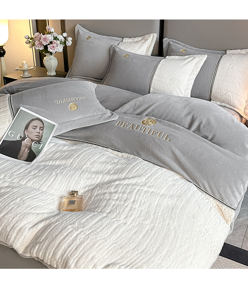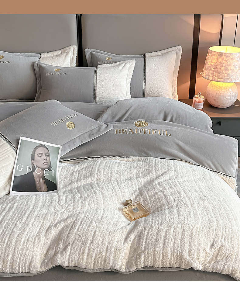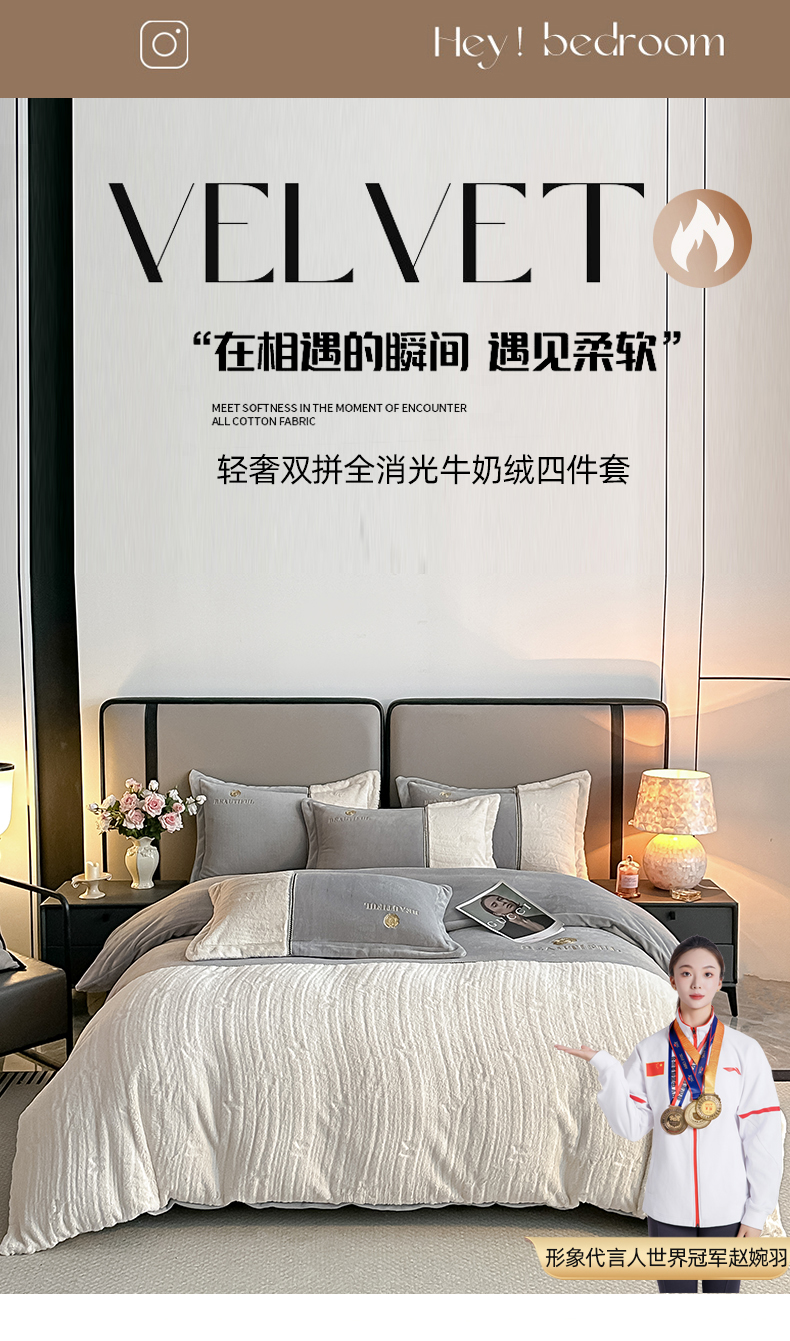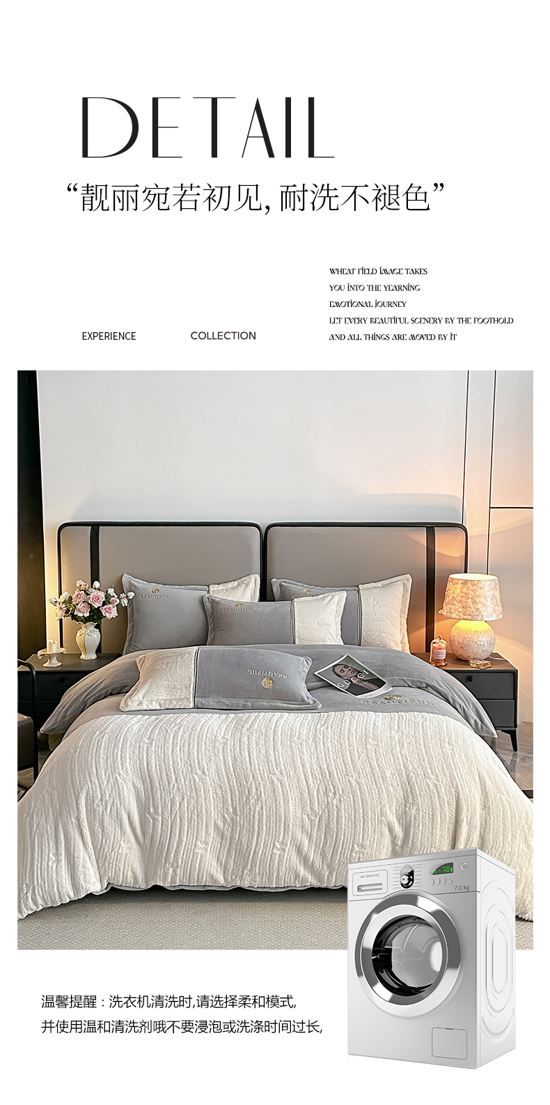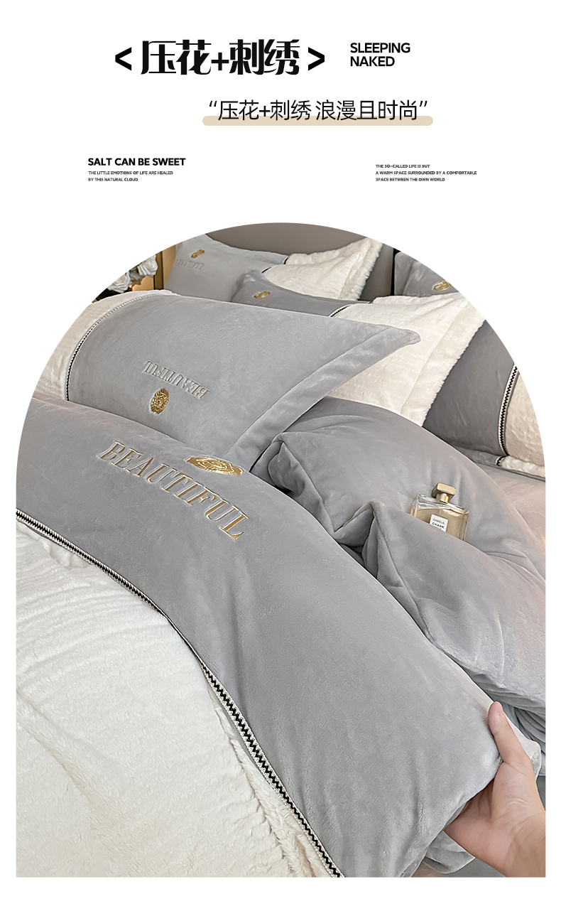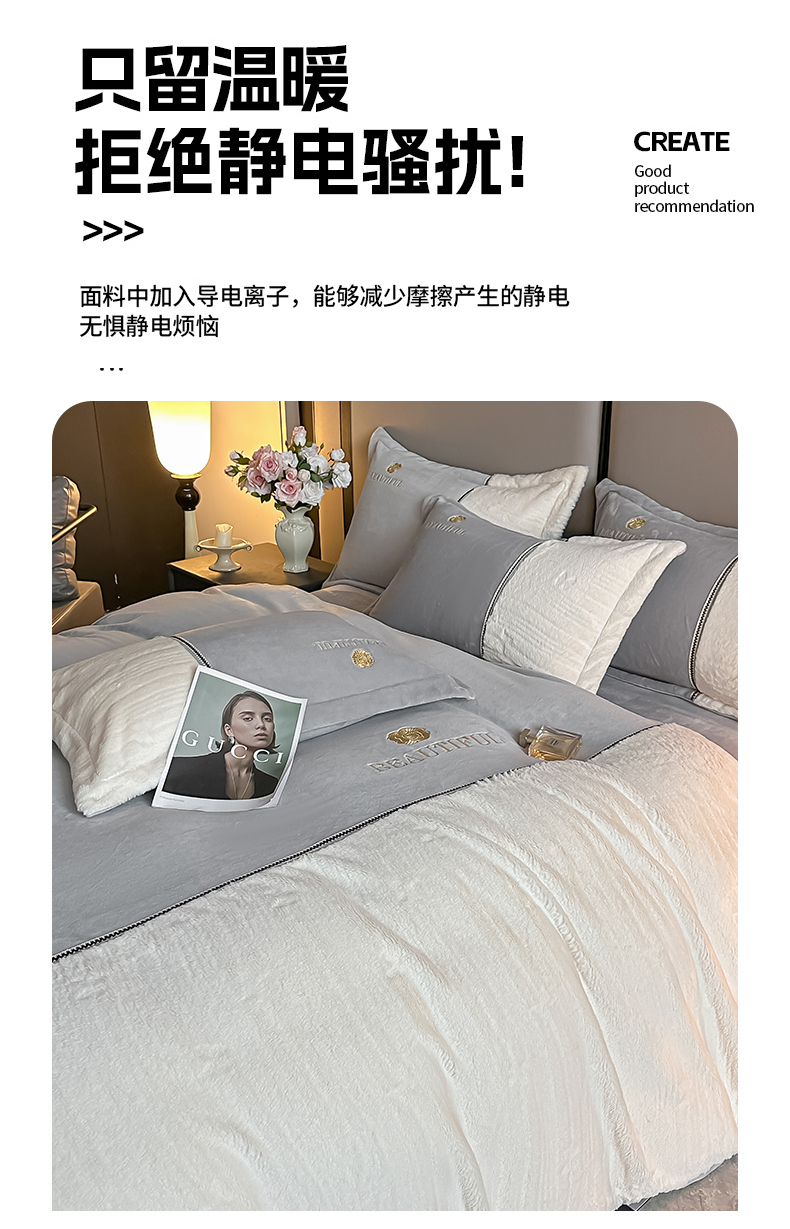 商品名称:金窝窝家纺 2025新款轻奢双拼全消光牛奶绒四件套-安娜 安娜-绅士灰