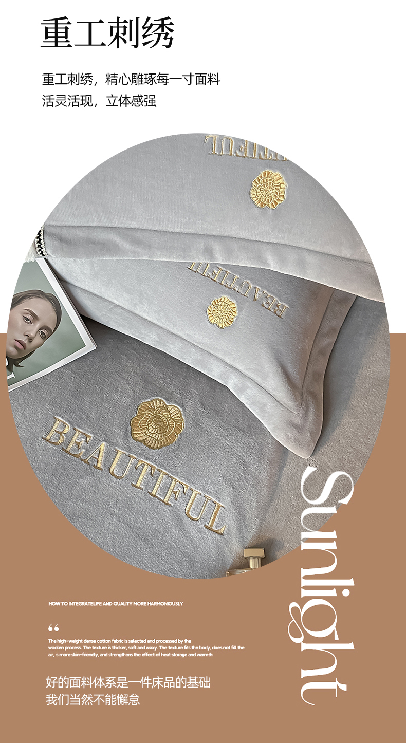 总金窝窝家纺2024重工刺绣280克A类婴儿牛奶绒刺绣四件套系列-美好生活,美好生活—粉