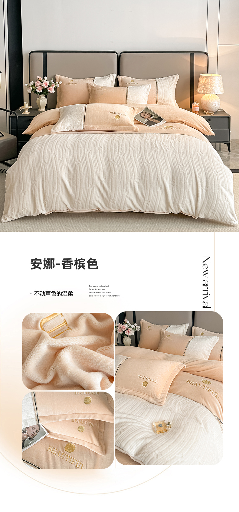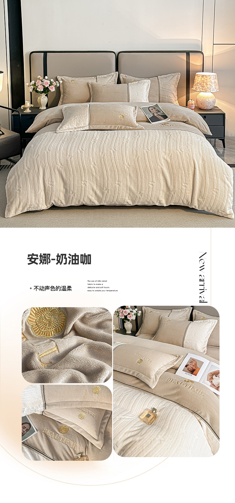 (总)金窝窝家纺 2025新款轻奢双拼全消光牛奶绒四件套-安娜,安娜-黛粉,安娜-咖色,安娜-蜜桃粉,安娜-奶油咖,安娜-浅草绿,安娜-绅士灰,安娜-香槟色