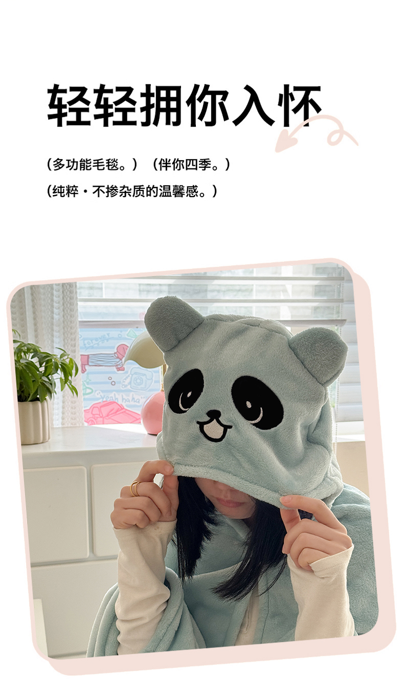 商品名称:(总)简宜家居(朝初家纺) 2025新款带帽披肩毯子熊猫和熊午休毯带帽毯