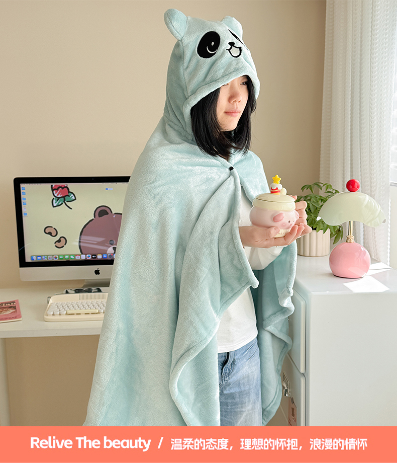 (总)简宜家居(朝初家纺) 2025新款带帽披肩毯子熊猫和熊午休毯带帽毯