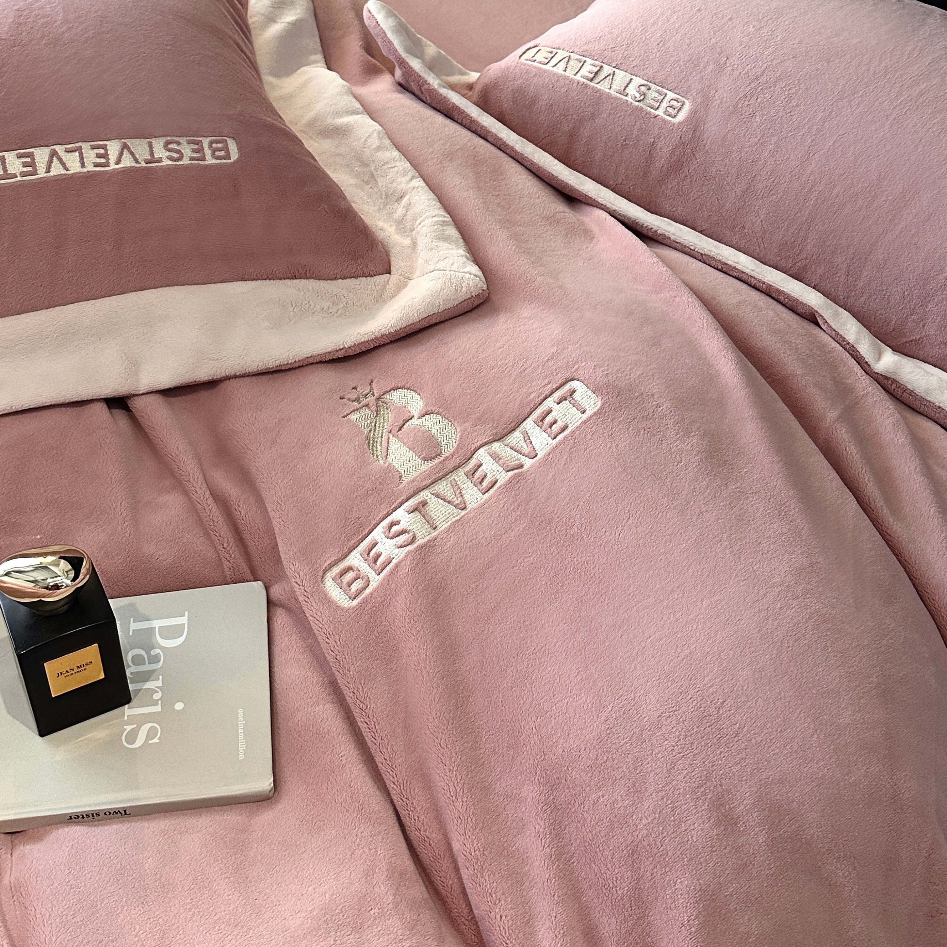 南泉坊 2025新款230克全消光牛奶绒刺绣四件套 墨尔本-豆沙