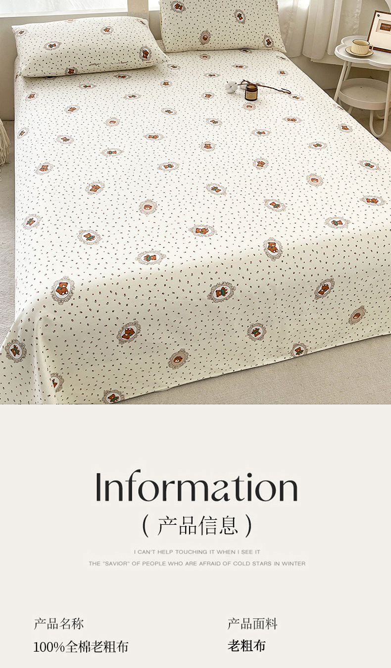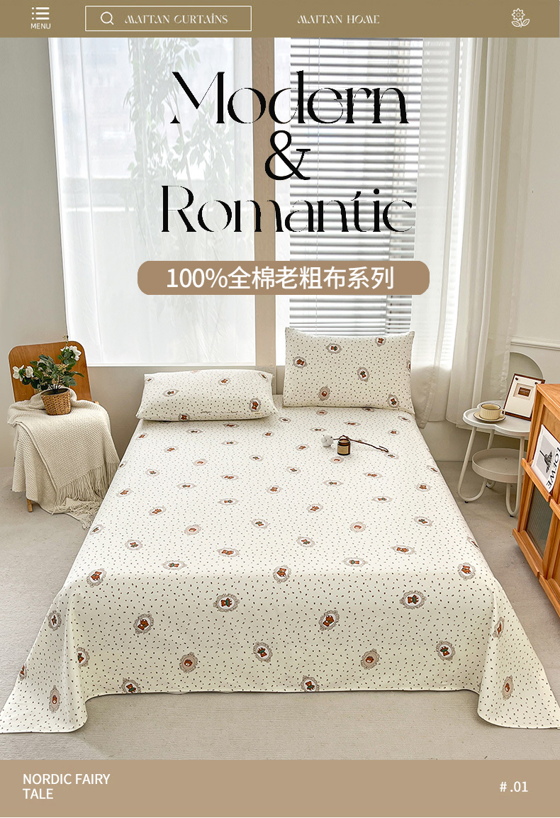 商品名称:(总)咏绒家纺工厂店 2025新款100全棉纯棉老粗布花卉系列无印系列单品床单三件套【有版权】