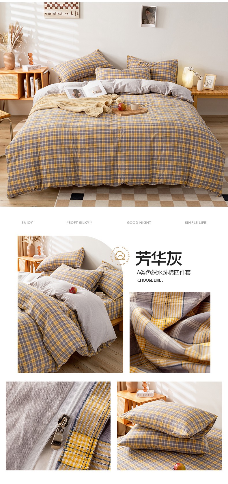 当前位置: 91家纺网 > 商品网购 > 床品套件 > 四件套 > 水洗棉四件套 > 咏绒家纺工厂店 2025新款A类色织水洗棉四件套 灰桔格