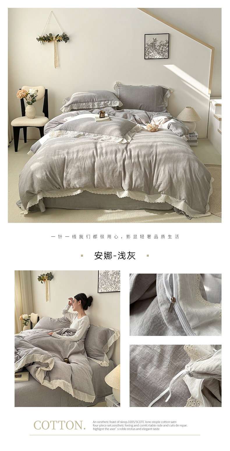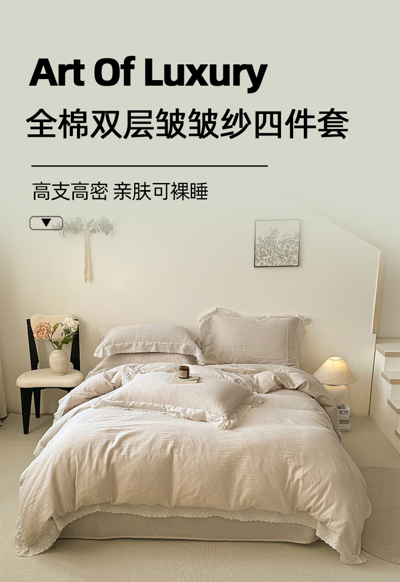 当前位置: 91家纺网 > 商品网购 > 床品套件 > 四件套 > 其它四件套 > 咏绒家纺工厂店 2025新款全棉双层皱皱沙纯色四件套安娜 安娜-奶咖