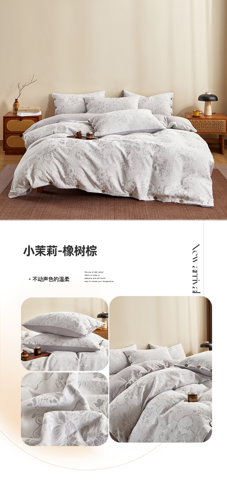 当前位置: 91家纺网 > 商品网购 > 床品套件 > 四件套 > 其它四件套 > 咏绒家纺工厂店 2025新款雪尼尔棉绒大提花四件套 小茉莉-橡树棕
