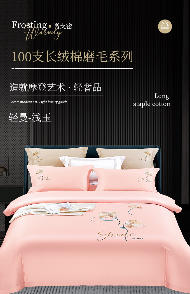 浩情国际婚庆供货中心 2026新品-100支全棉长绒棉磨毛高端刺绣系列四件套 轻曼-浅玉