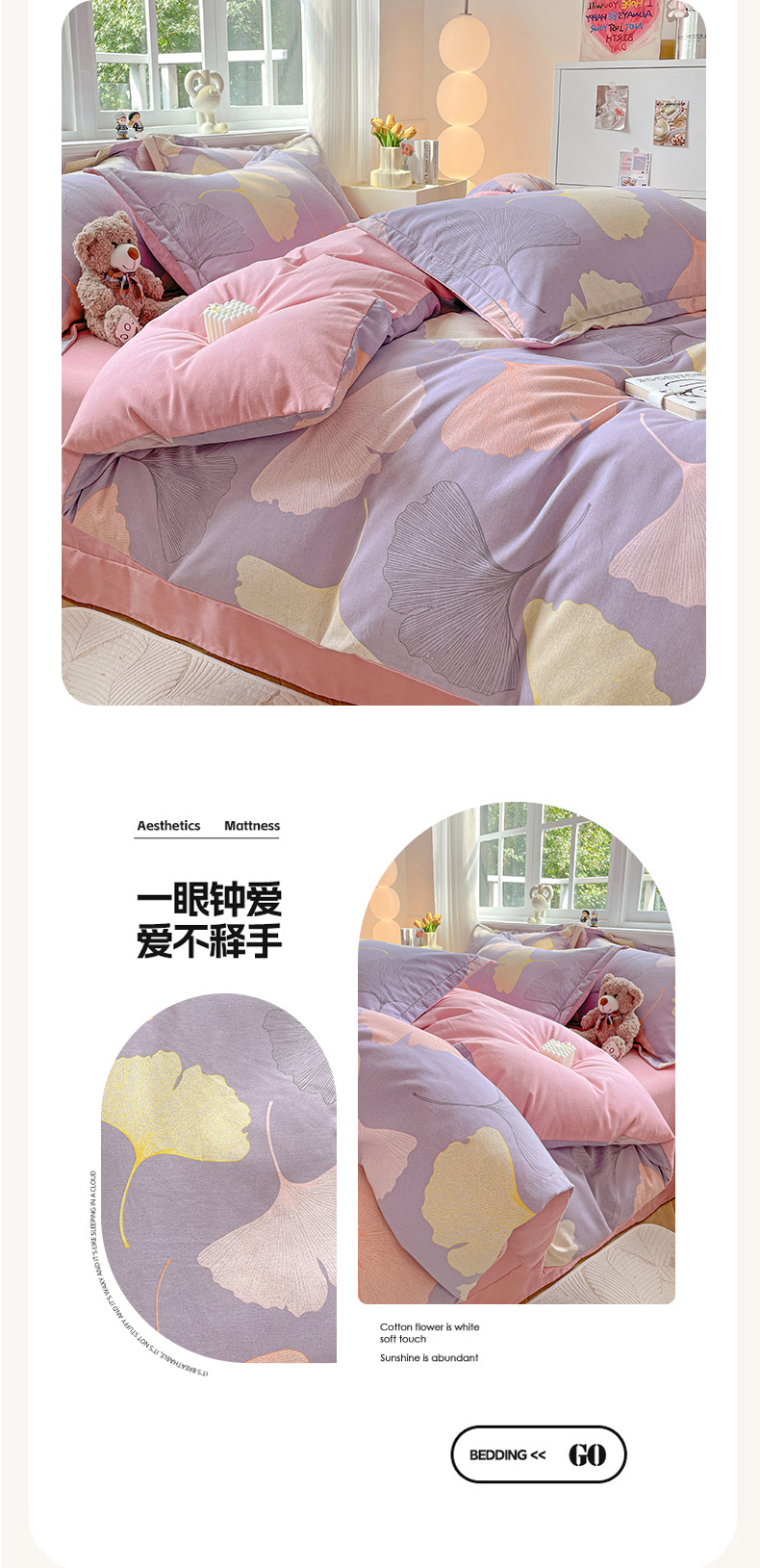 曲之慕 2026新款全棉纯棉加厚喷气磨毛印花四件套 秋叶