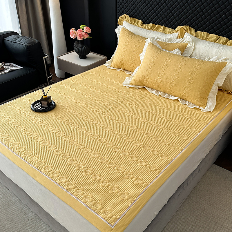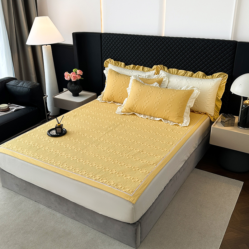 • 91家纺网 家纺一手货源 找家纺 紫碧螺家纺 2025新款全棉高精水洗棉床盖床笠系列 柳黄