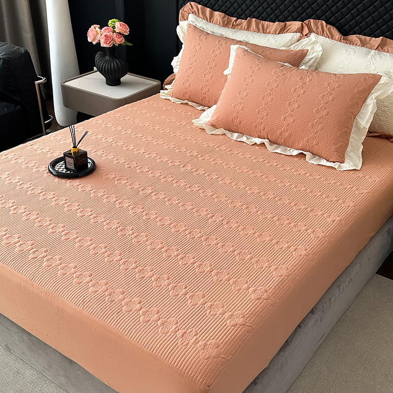 (总)紫碧螺家纺 2025新款牛奶绒绗绣裙式床盖三件套,暖黄,银灰,绿色,粉色,奶白,浅紫