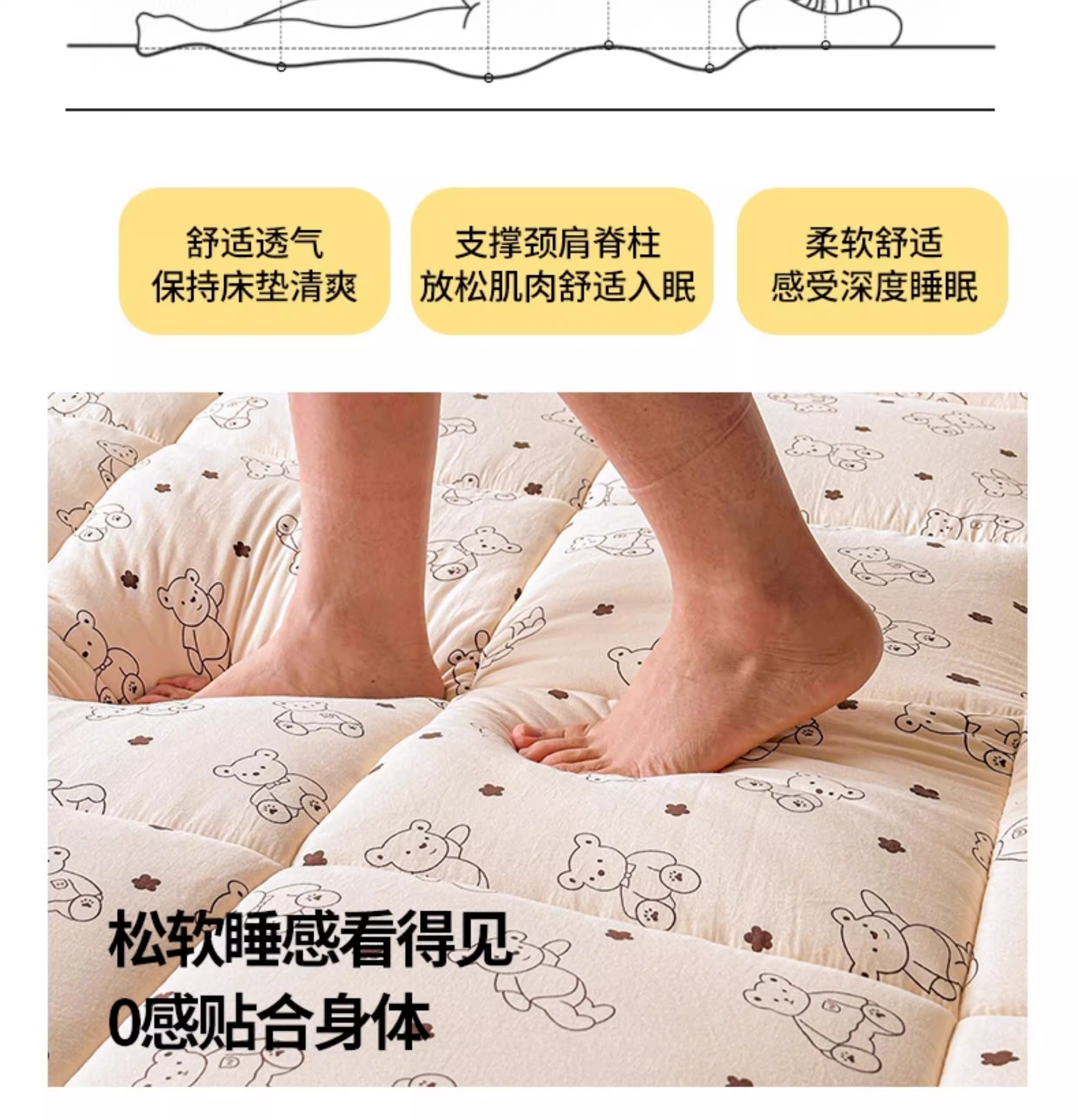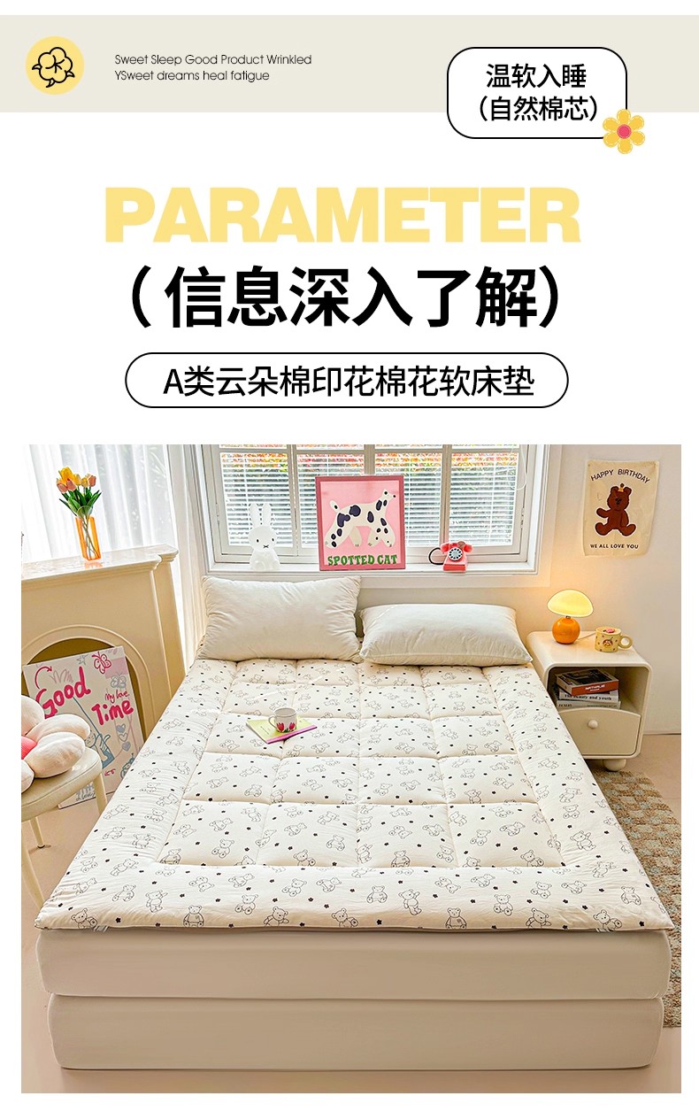 当前位置: 91家纺网 > 商品网购 > 床垫/床褥 > 普通床垫 > 好尚居 2026新款印花新疆棉床褥床垫 草莓小熊