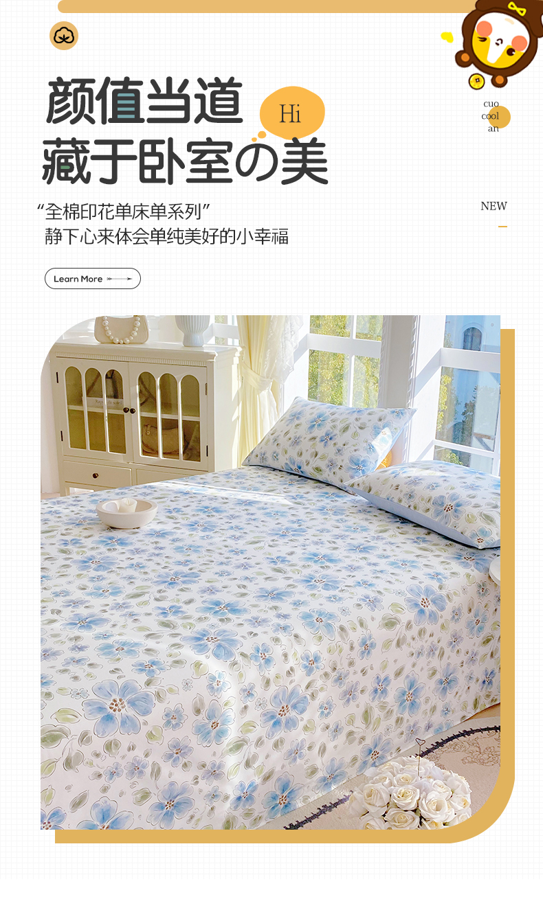 • 91家纺网 家纺一手货源 找家纺 小懒猪 2026全棉纯棉印花单床单床单单件 柳色衫林