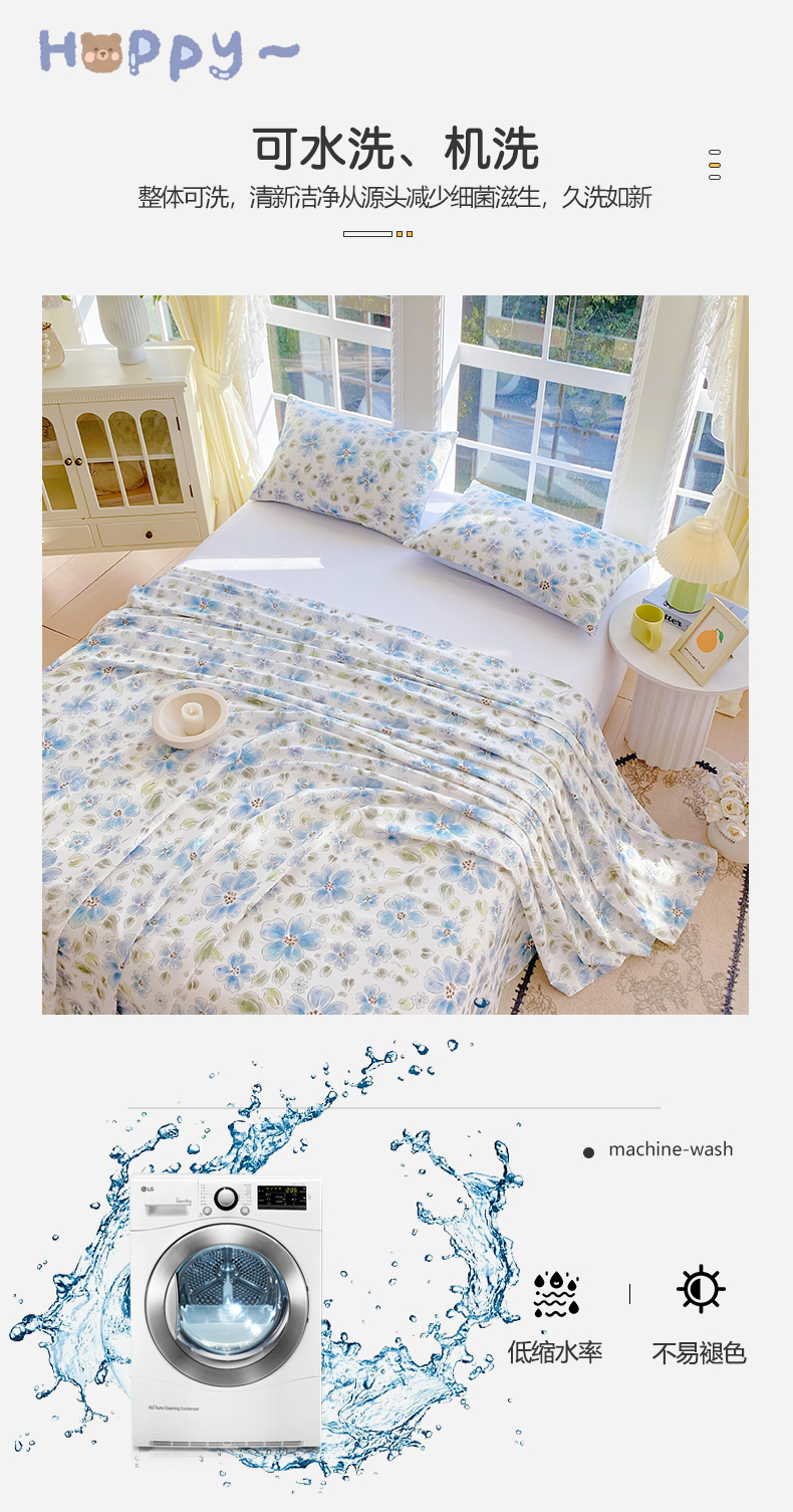 (总)小懒猪 2025新款全棉有氧有氧双层纱清新印花四件套,姹紫嫣红,繁花似锦,富贵满园,蓝花倩影,玫瑰花语,青枝绿叶