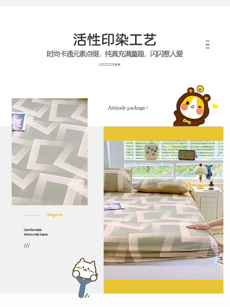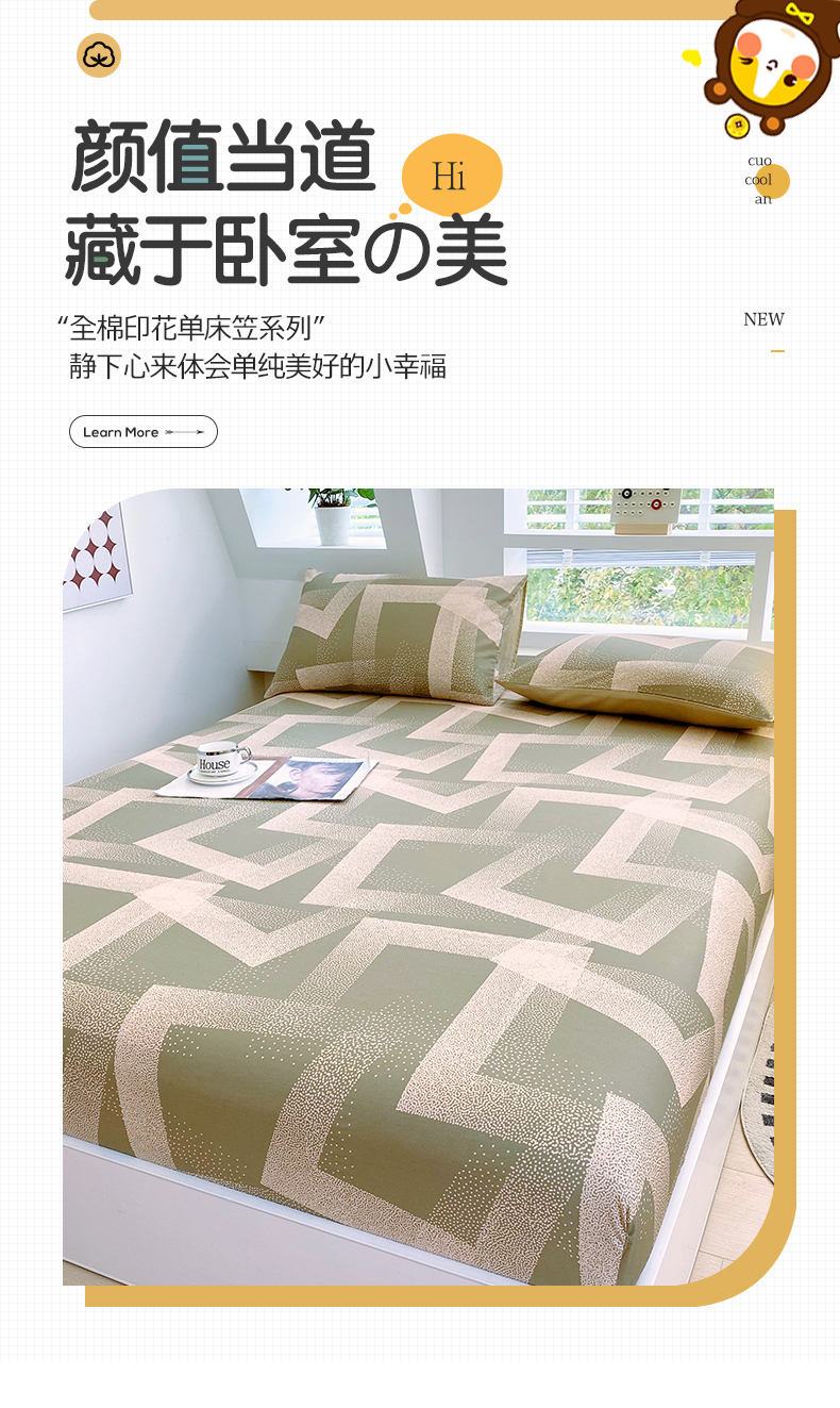 • 91家纺网 家纺一手货源 找家纺 小懒猪 2026新款全棉印花床笠 素律