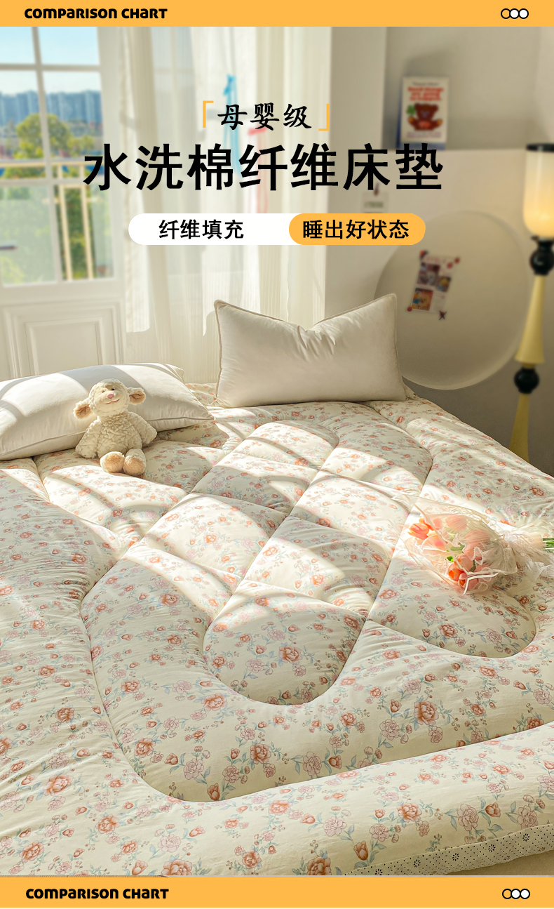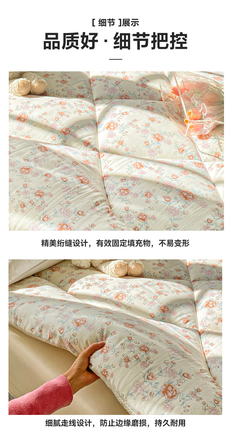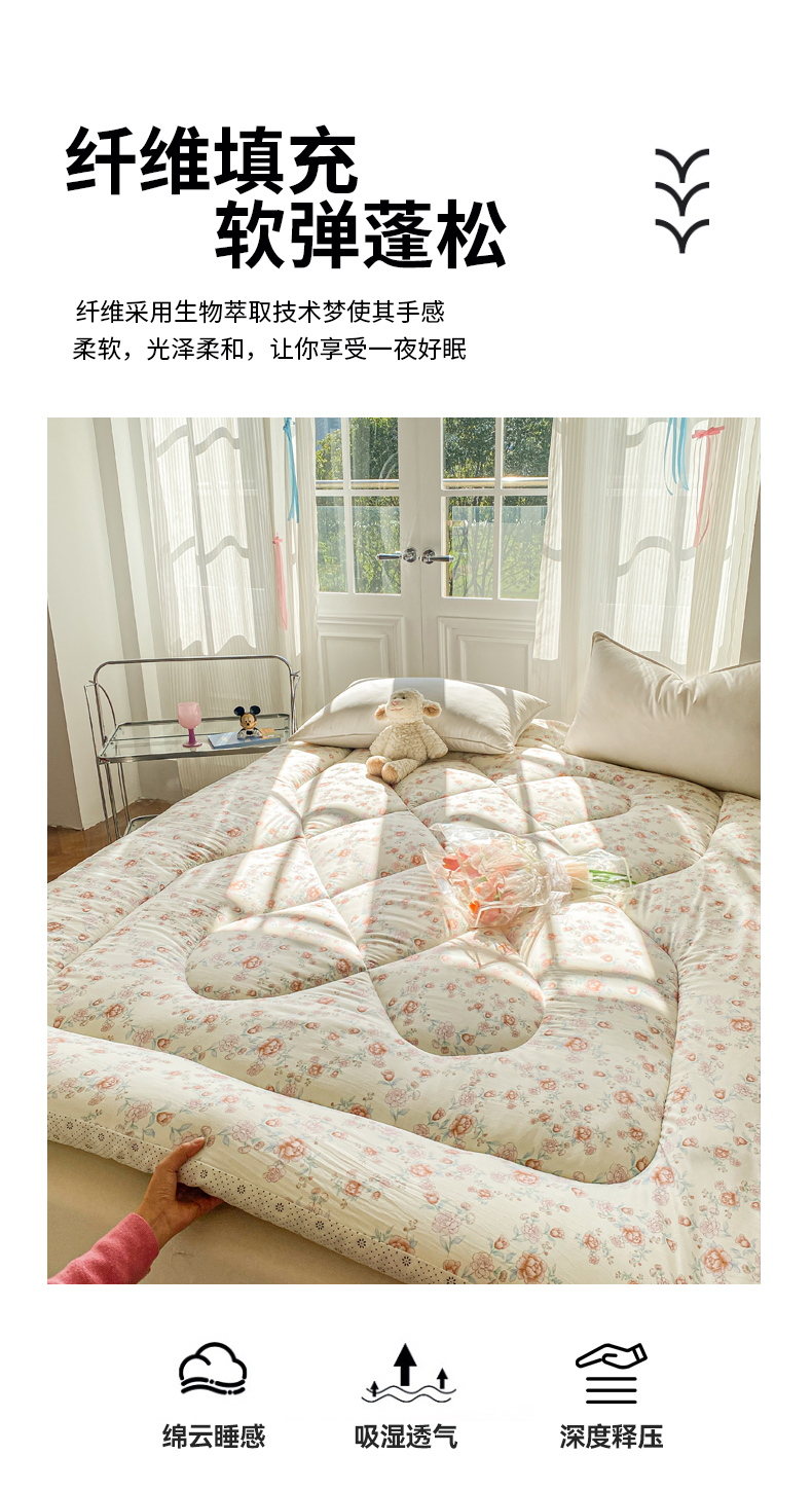 • 91家纺网 家纺一手货源 找家纺 缦卡琳家纺 2025新款水洗棉纤维羽丝棉床垫 玫瑰花语