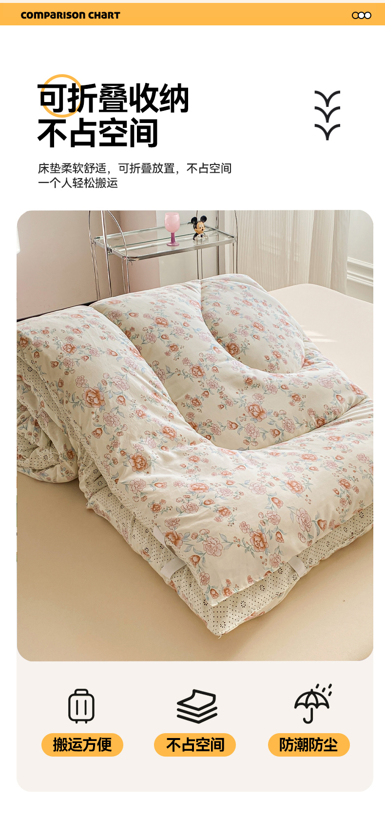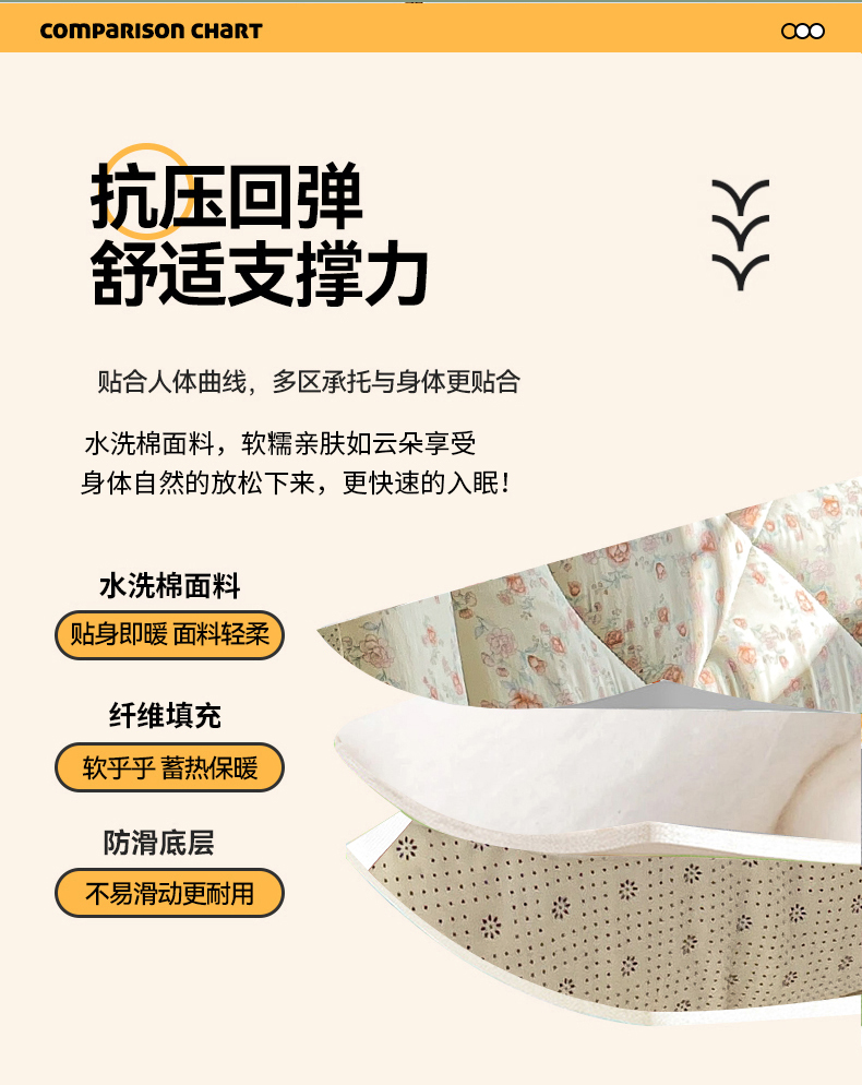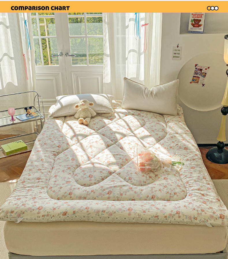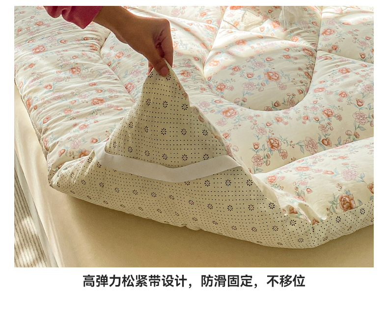 • 91家纺网 家纺一手货源 找家纺 缦卡琳家纺 2025新款水洗棉纤维羽丝棉床垫 玫瑰花语