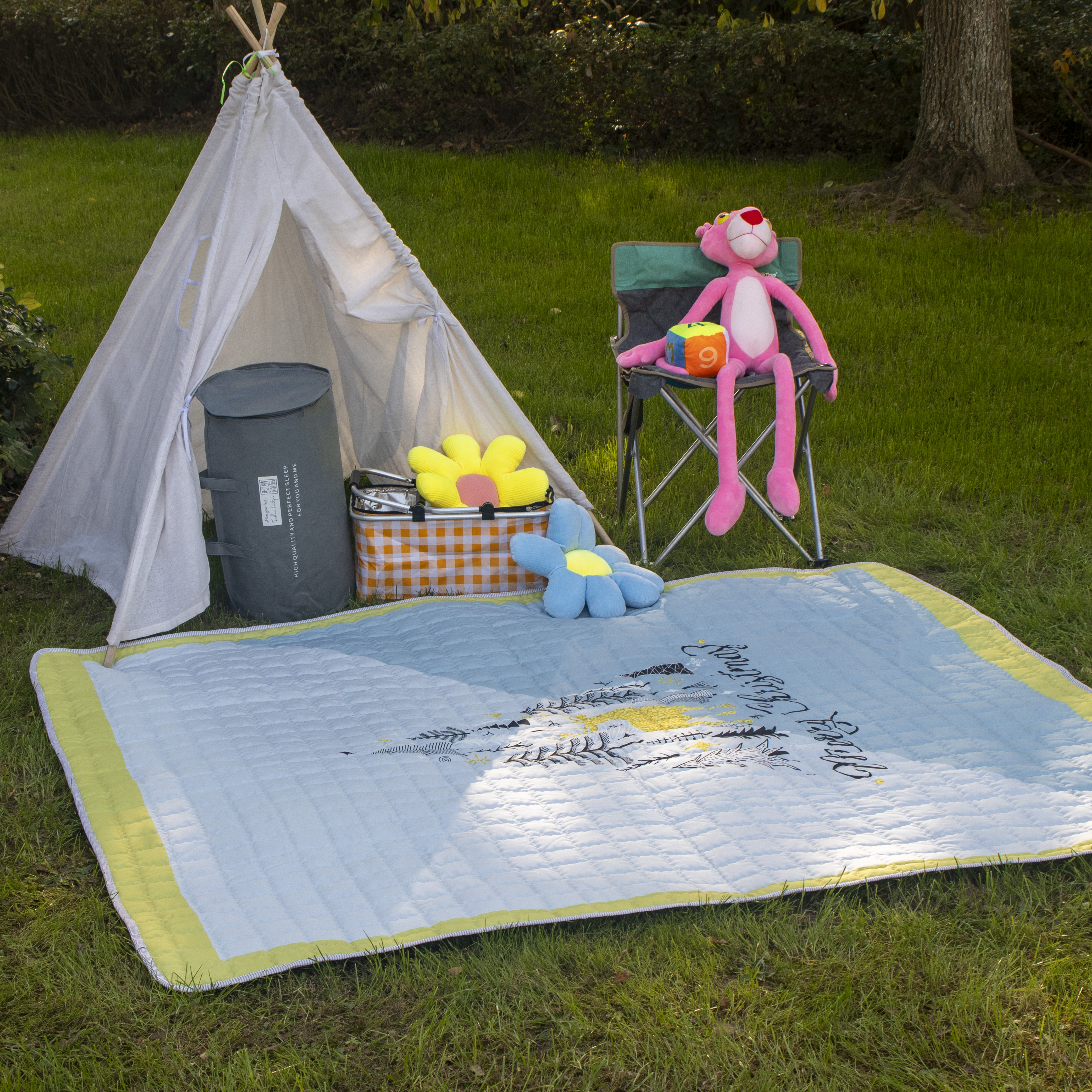 欣宜家纺 2025新款ins风加厚绗缝防泼水野餐垫 跳房子蓝