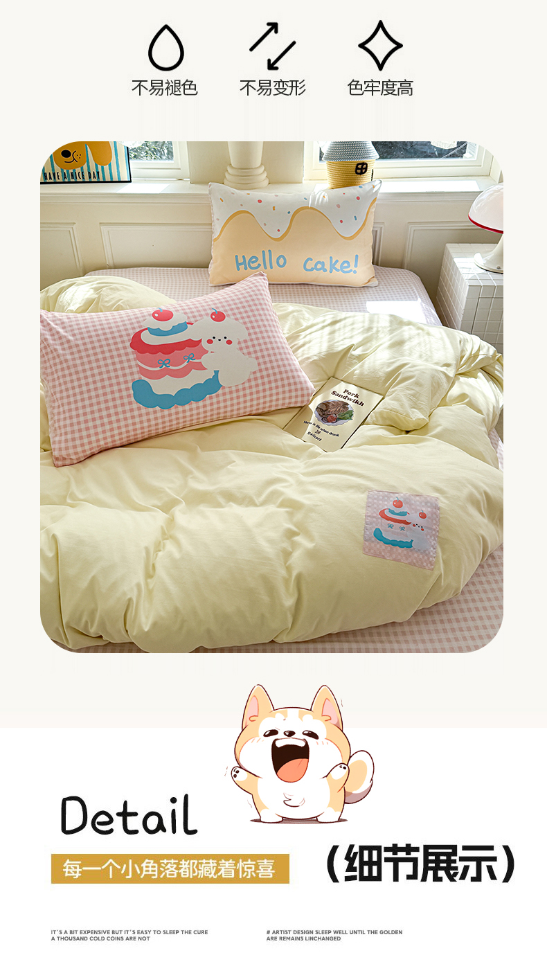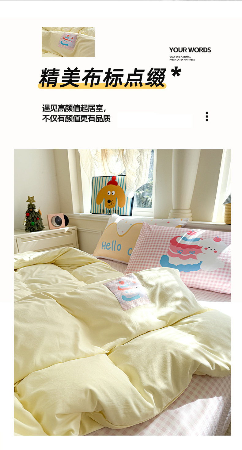 当前位置: 91家纺网 > 商品网购 > 床品套件 > 四件套 > 水洗棉四件套 > 温眠家纺 2025新款水洗云朵棉(高克重)数码布标四件套 甜心小狗