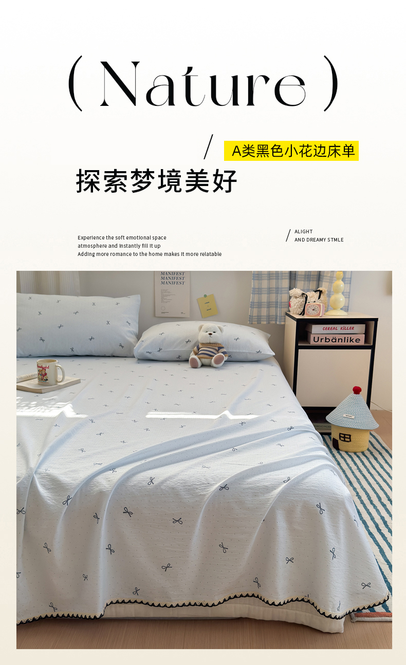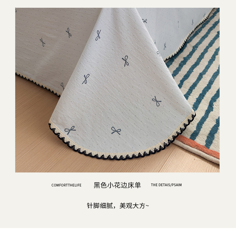 • 91家纺网 家纺一手货源 找家纺 沐芷 2026 【提供买家秀】双层纱A类黑色小花边单床单/床单三件套 被单 波点蓝结