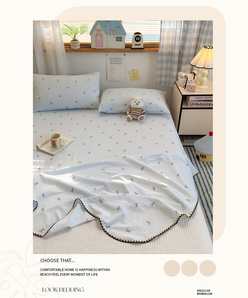 (总)沐芷 2026 【提供买家秀】A类单床单古法水洗仿棉 单人双人床单三件套,甜梦糖豆,星仔,巴黎甜心,白月光,豹纹音乐,波点汪语,彩虹跳跳糖,漫游小鱼,萌犬游记,萌物,迷你格-黄,迷你格-蓝,奶味圆饼,暖意小熊,樱桃物语
