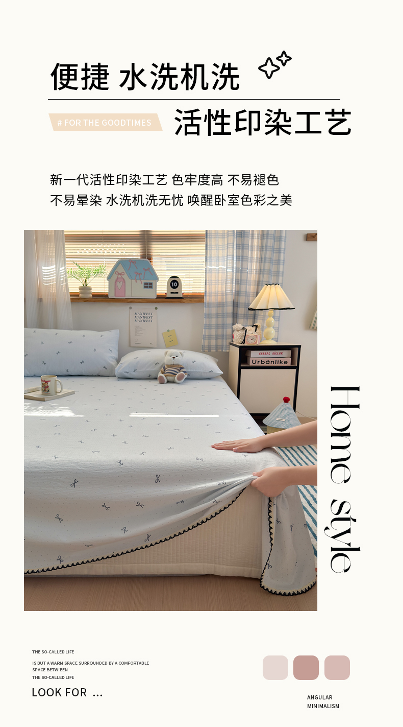 • 91家纺网 家纺一手货源 找家纺 (总)沐芷 2026 【提供买家秀】古法水洗仿棉床笠席梦思床罩床垫防滑床套罩床笠三件套,萌物,甜梦糖豆,巴黎甜心,白月光,豹纹音乐,波点汪语,彩虹跳跳糖,漫游小鱼,萌犬游记,迷你格-黄,迷你格-蓝,奶味圆饼,暖意小熊,星仔,樱桃物语,组合图