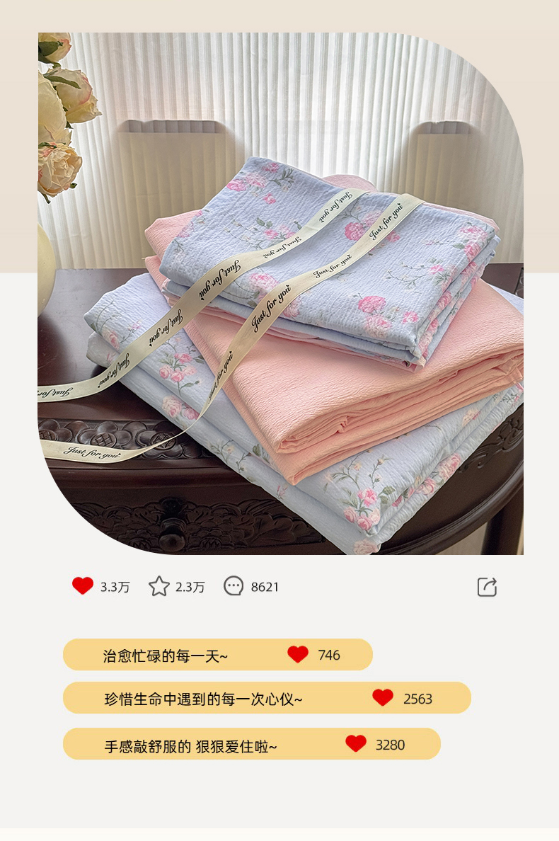 当前位置: 91家纺网 > 商品网购 > 床品套件 > 四件套 > 双层纱四件套 > 温眠家纺 2025新款云感针织双层纱四件套 蓝溪