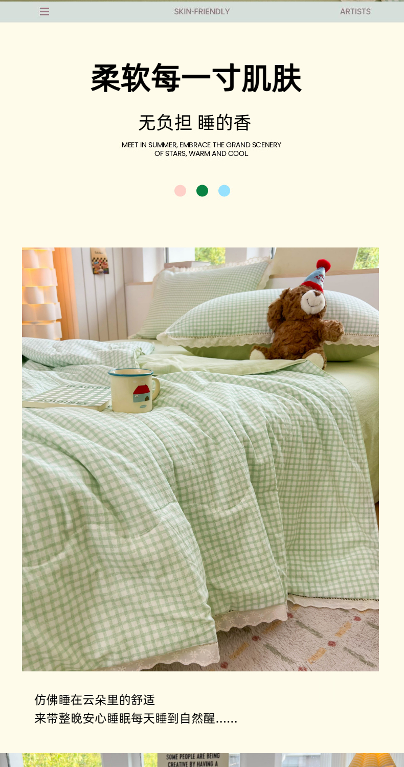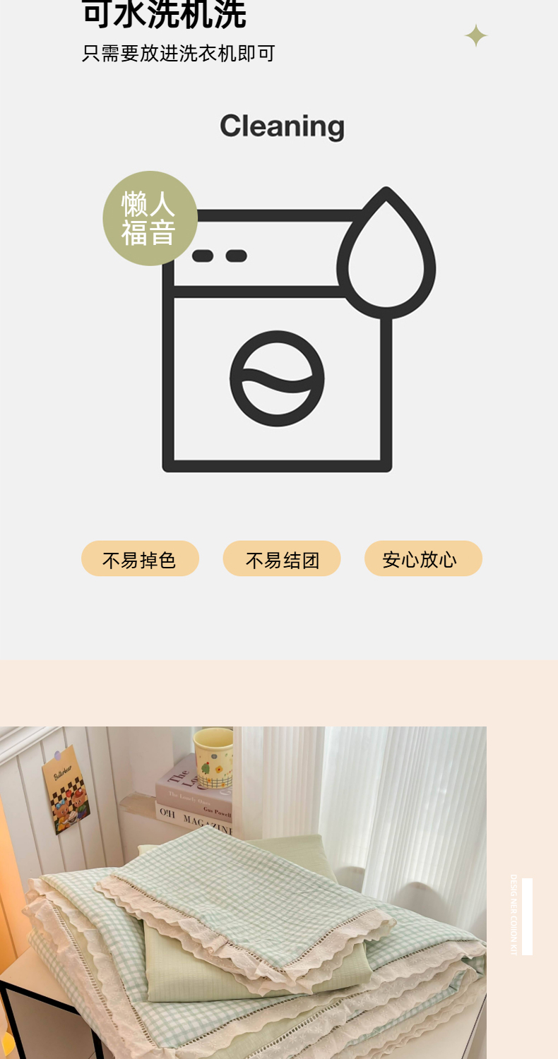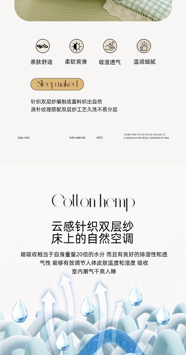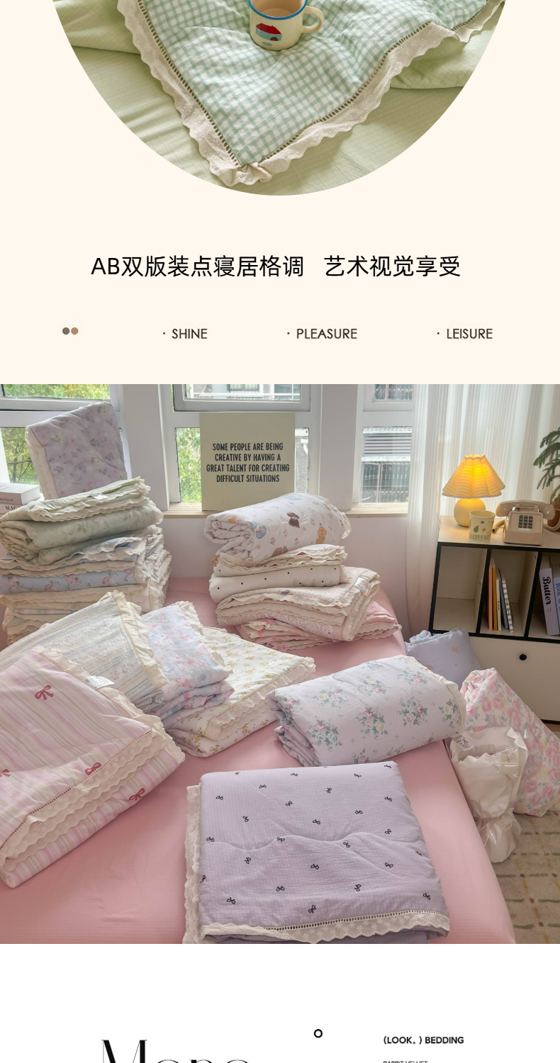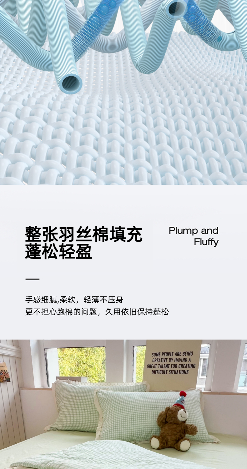 商品名称:温眠家纺 2025新款云感双层纱镂空花边夏被四件套 小绿格