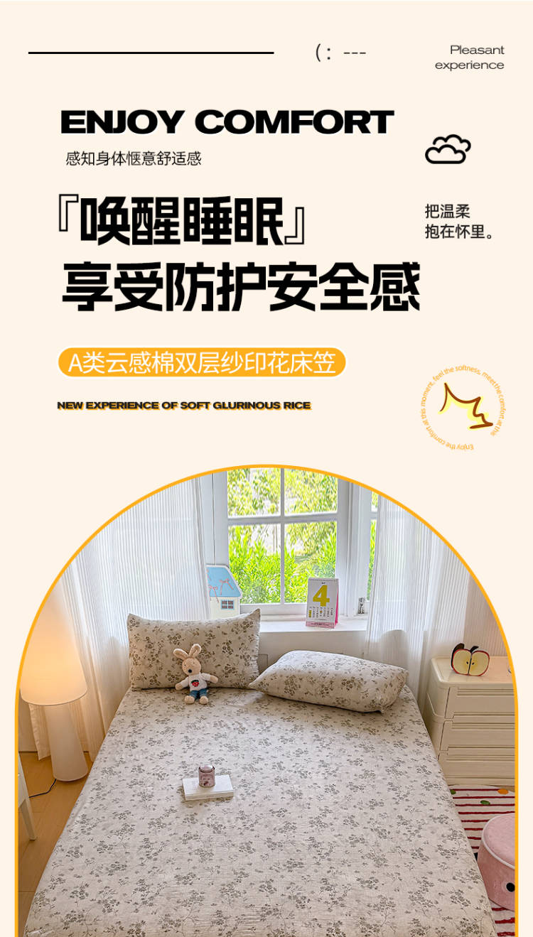 • 91家纺网 家纺一手货源 找家纺 温眠家纺 2025春夏新款云感棉双层纱床笠单床笠枕套三件套 莓乐蒂 91家纺网 家纺一手货源 找家纺 温眠家纺 2025春夏新款云感棉双层纱床笠单床笠枕套三件套 莓乐蒂