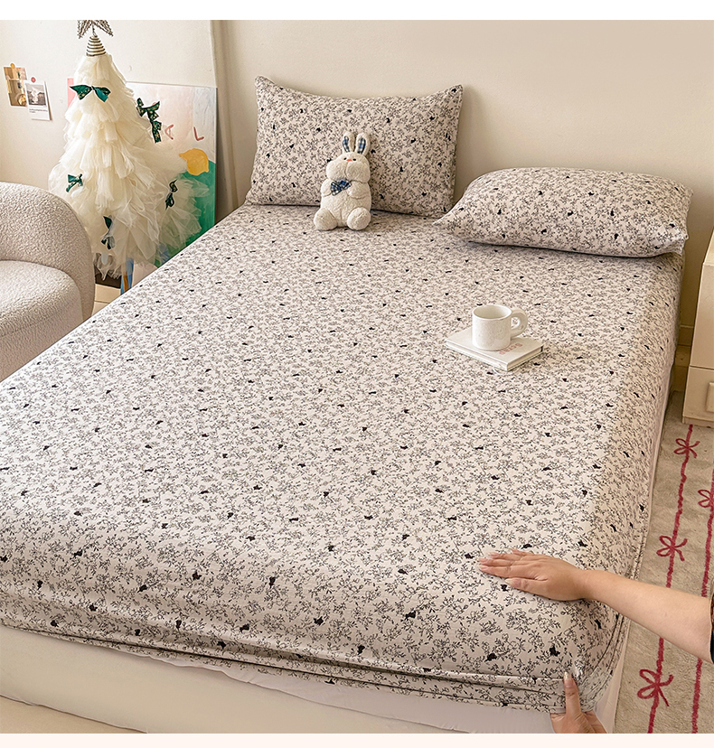 • 91家纺网 家纺一手货源 找家纺 温眠家纺 2025春夏新款云感棉双层纱床笠单床笠枕套三件套场景二 兔与晚风